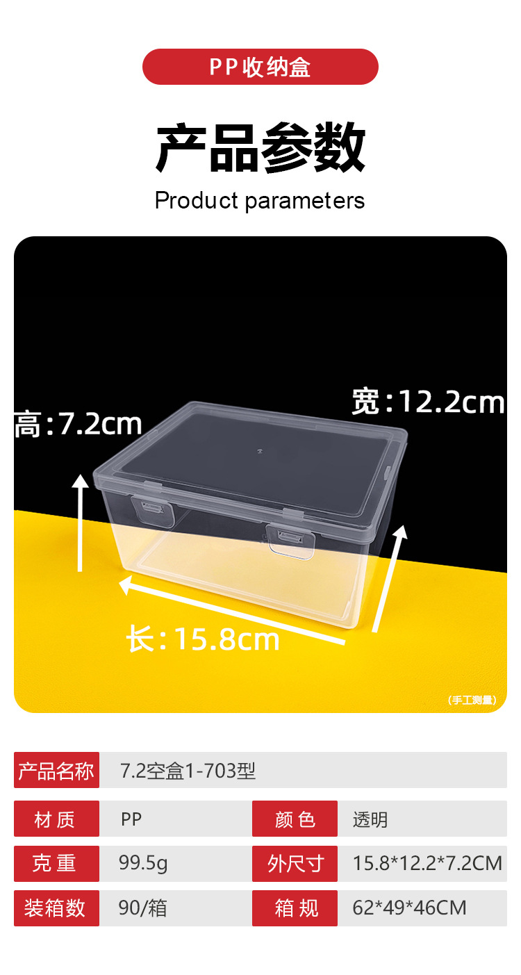 7.2 높은 더블 버클 pp 플라스틱 투명 상자 가정용 잡화 먼지 상자 데이터 케이블 휴대 전화 유지 보수 저장 상자