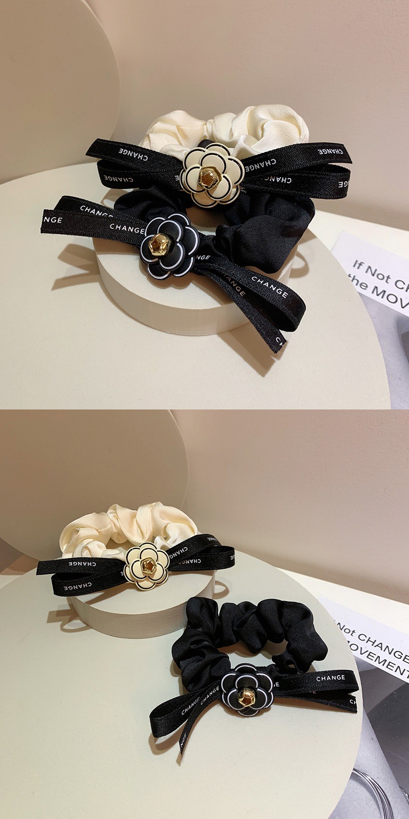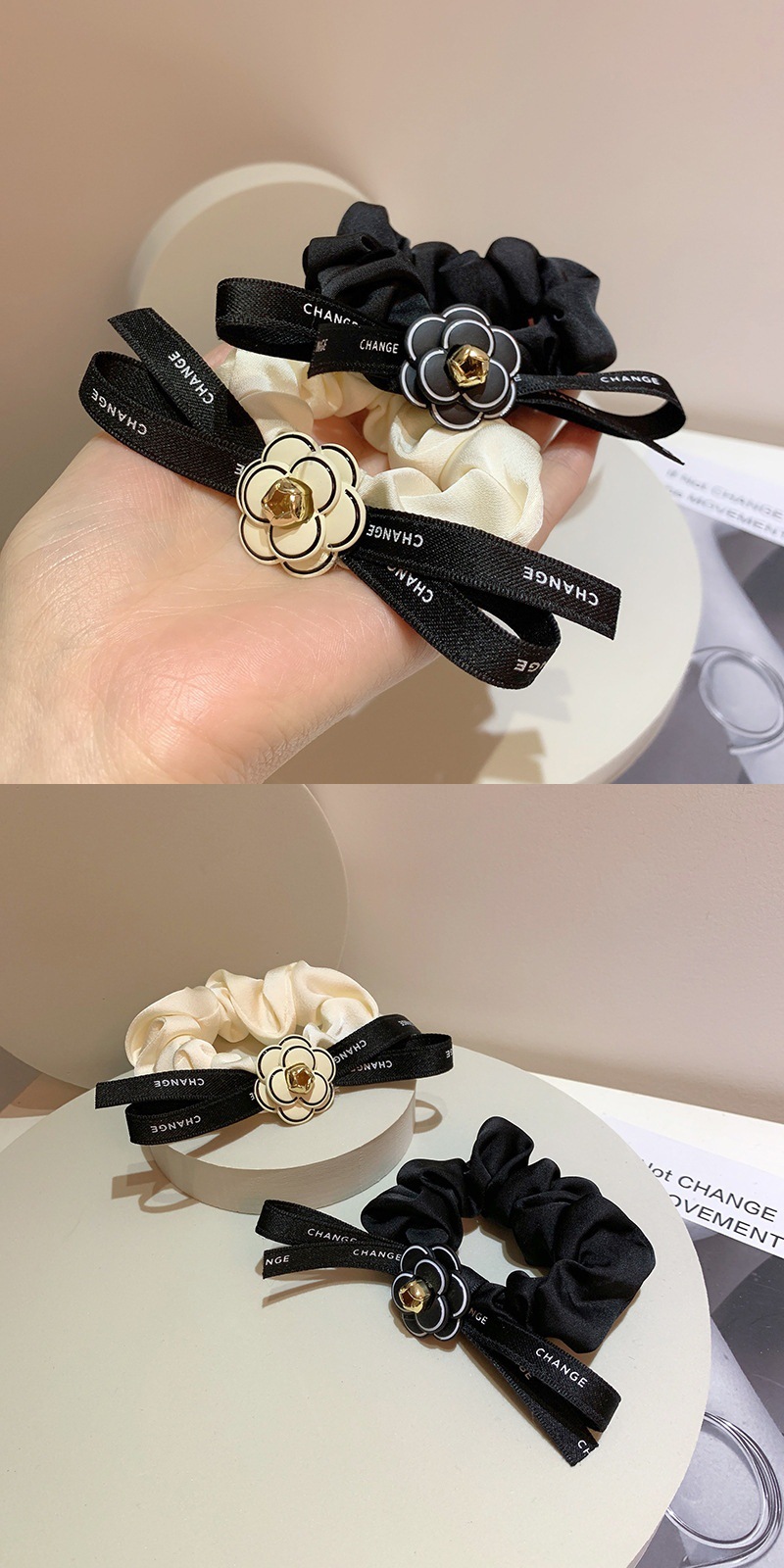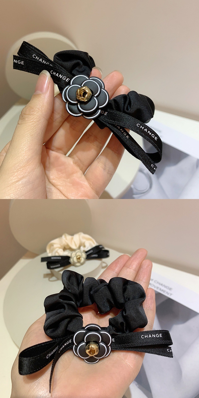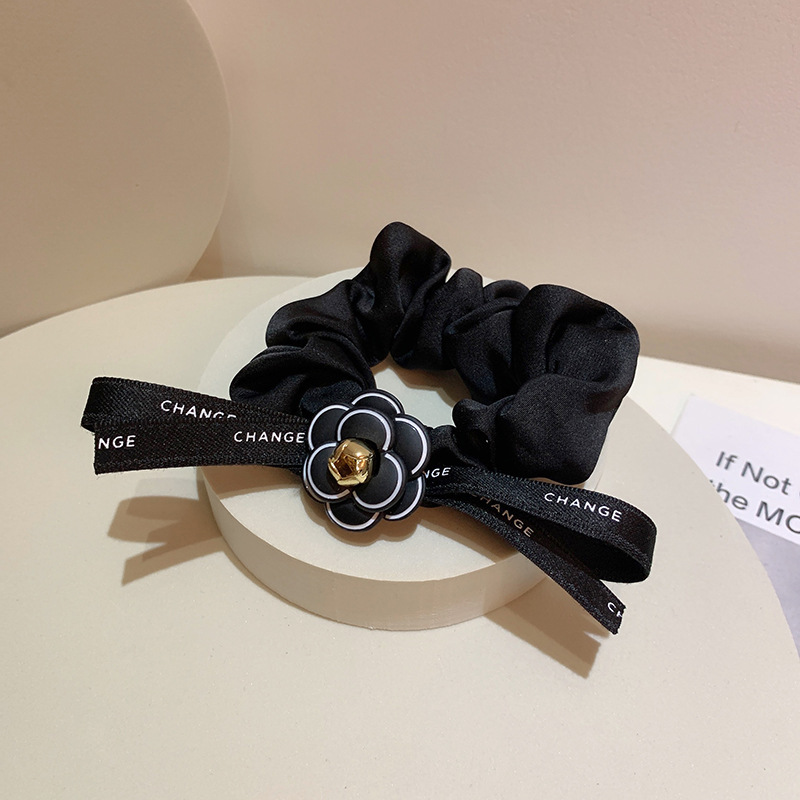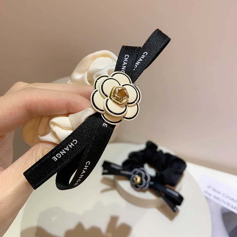 2024 가벼운 럭셔리 헤어 로프 작은 향수 스타일 대형 Intestine 헤어 링 고급 부티크 동백 리본 활 Feichang 링 여성