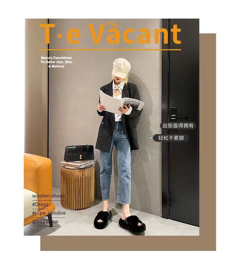 여성용 털 슬리퍼 2025 신상 한국 스타일 인스 트렌드 신발 가을 겨울 2024 홈 코튼 슬리퍼 봄 여름스토어 가기