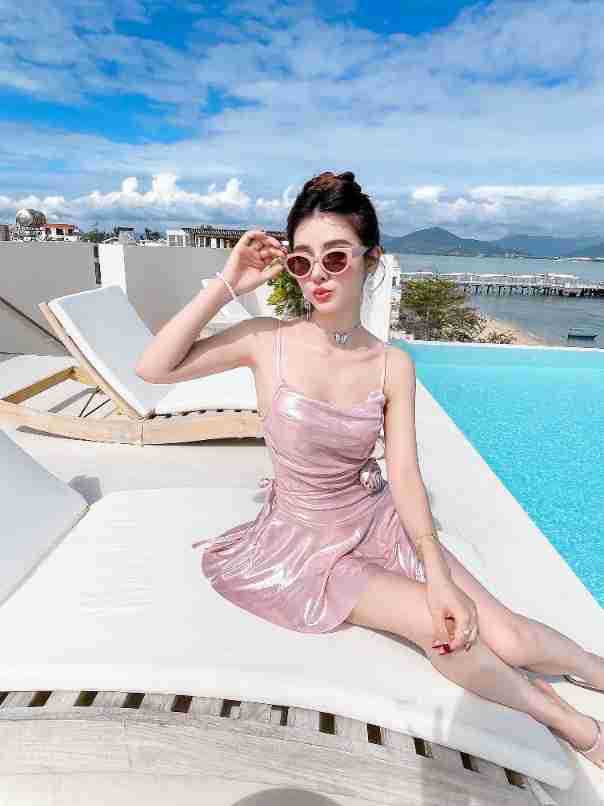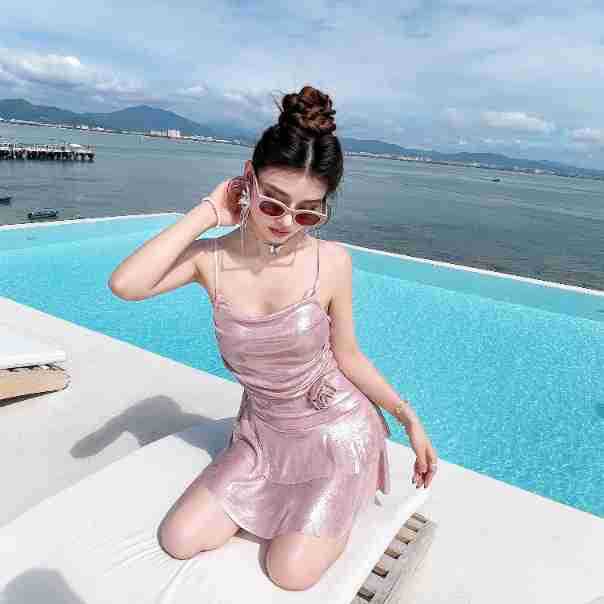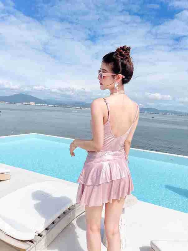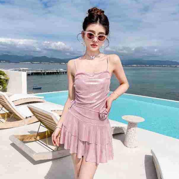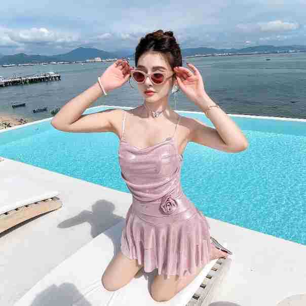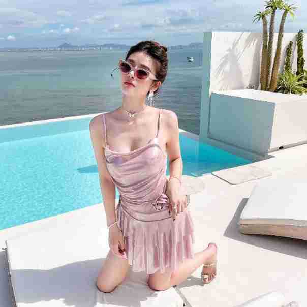 수영복 2024 새로운 여름 약간의 뚱뚱한 소녀의 고기 순수한 욕망 핑크 고급 섹슈얼리티 스커트 스타일 보수적 인 온천스토어 가기