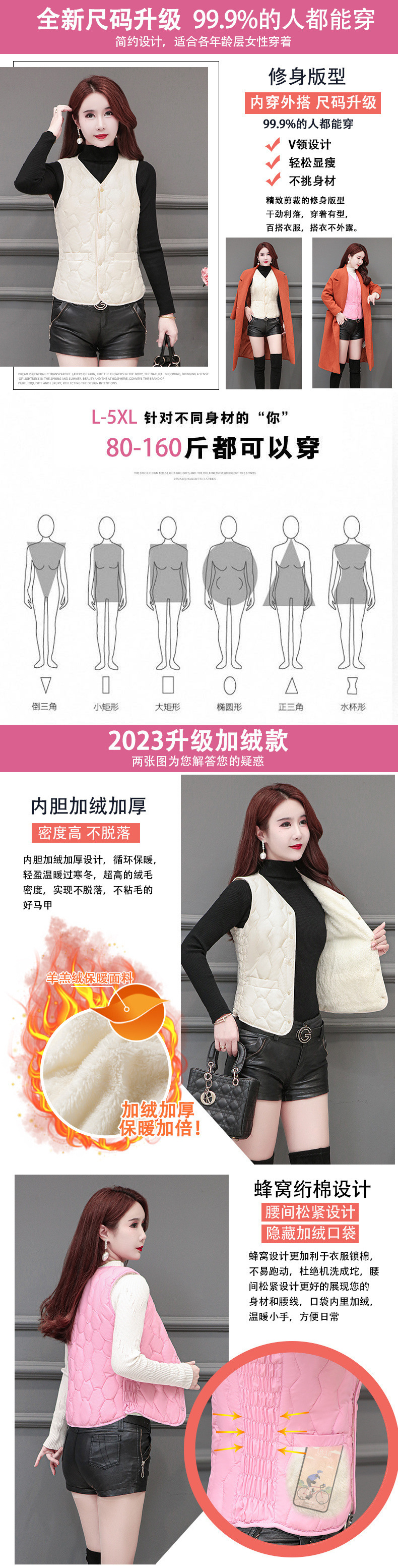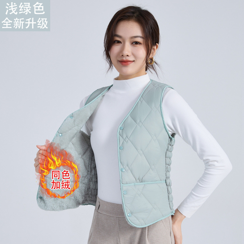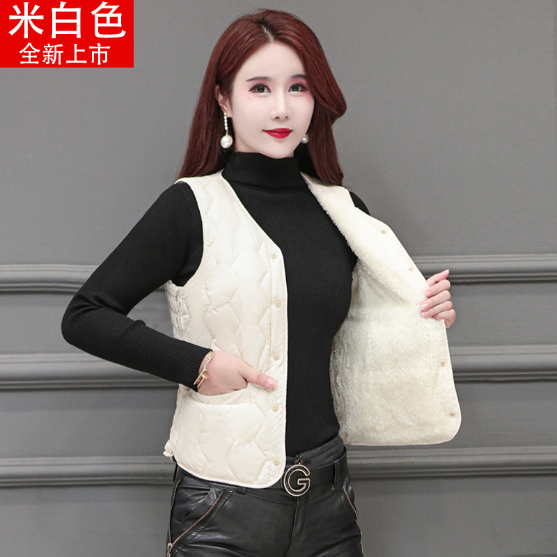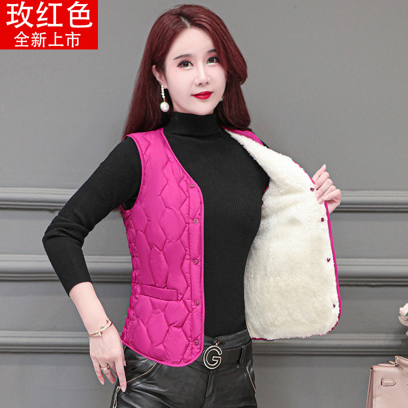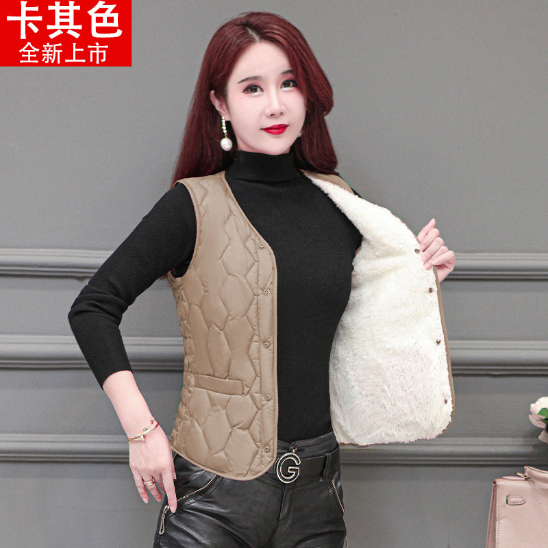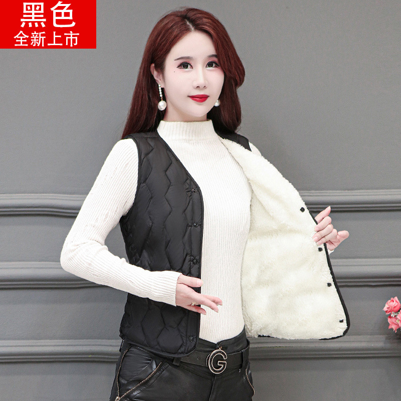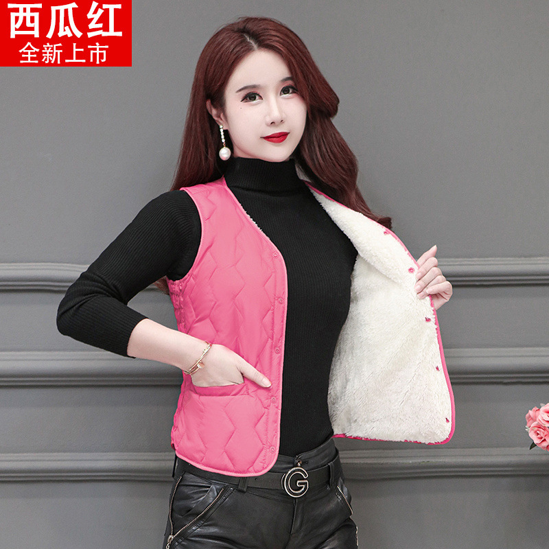 라이너 겨울면 조끼 여성용 양고기 2024 슬림 핏 짧은 따뜻한 플러스 사이즈 조끼스토어 가기