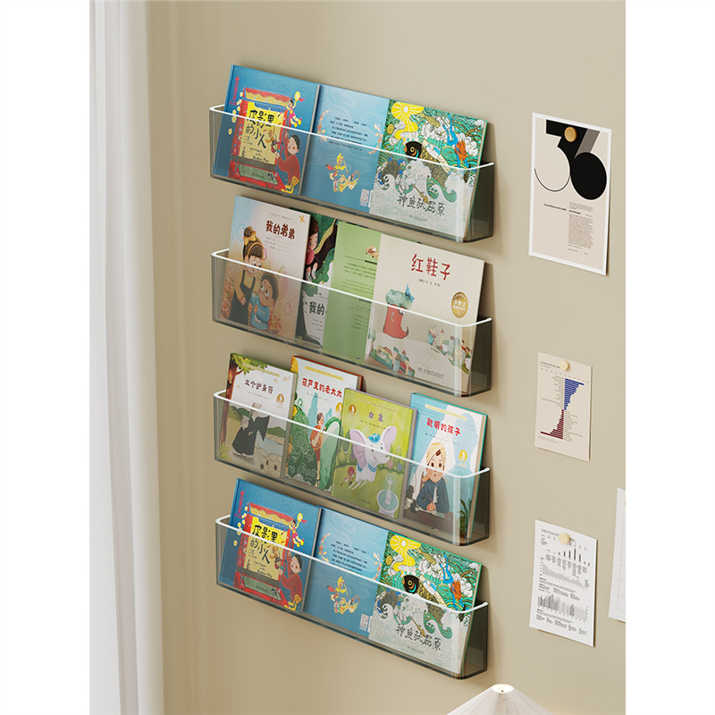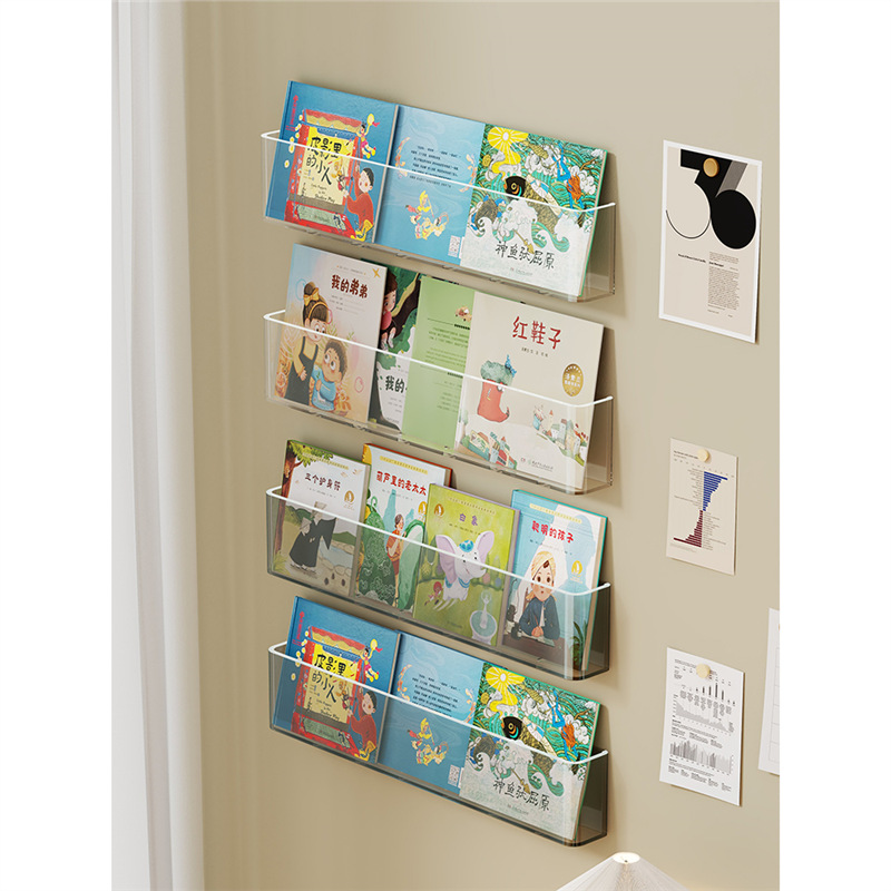 펀치없는 어린이 그림책 보관 랙 도어 후면 책꽂이 벽 아크릴 고정 랙 벽 장착 통로 디스플레이 랙