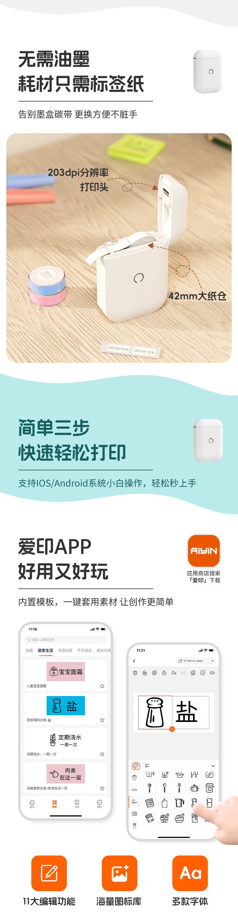 휴대용 프린터 라벨 미니 휴대용 가정용 열 라벨 편의성 스티커 블루투스 연결 대형 제공스토어 가기