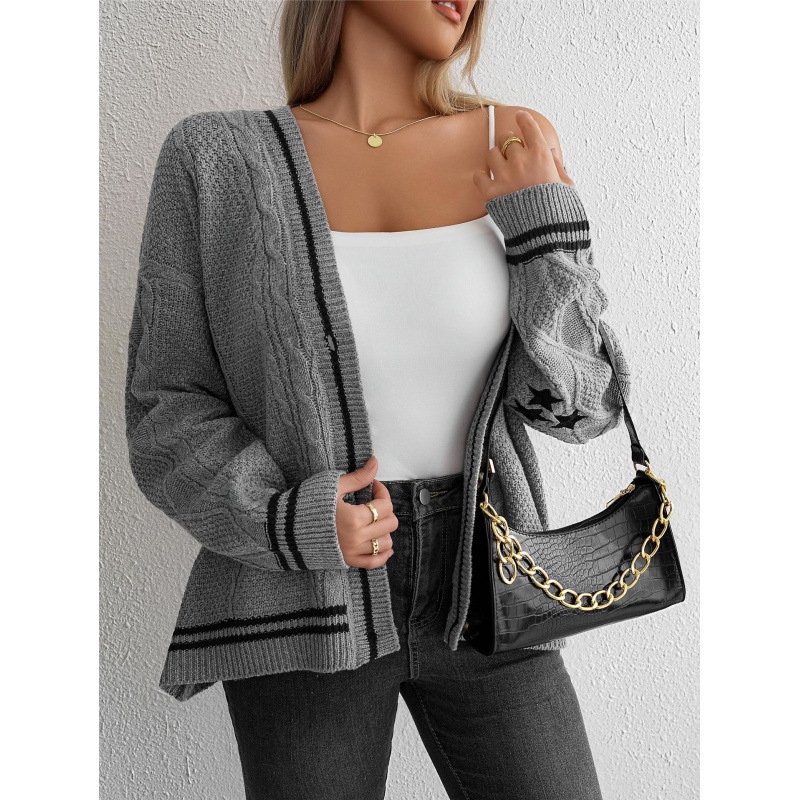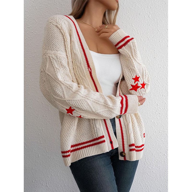 니트 카디건 스웨터 여성 202 가을 겨울 일본 스타일 게으른 스타일 자수 스타즈 느슨한 니트 카디건 재킷