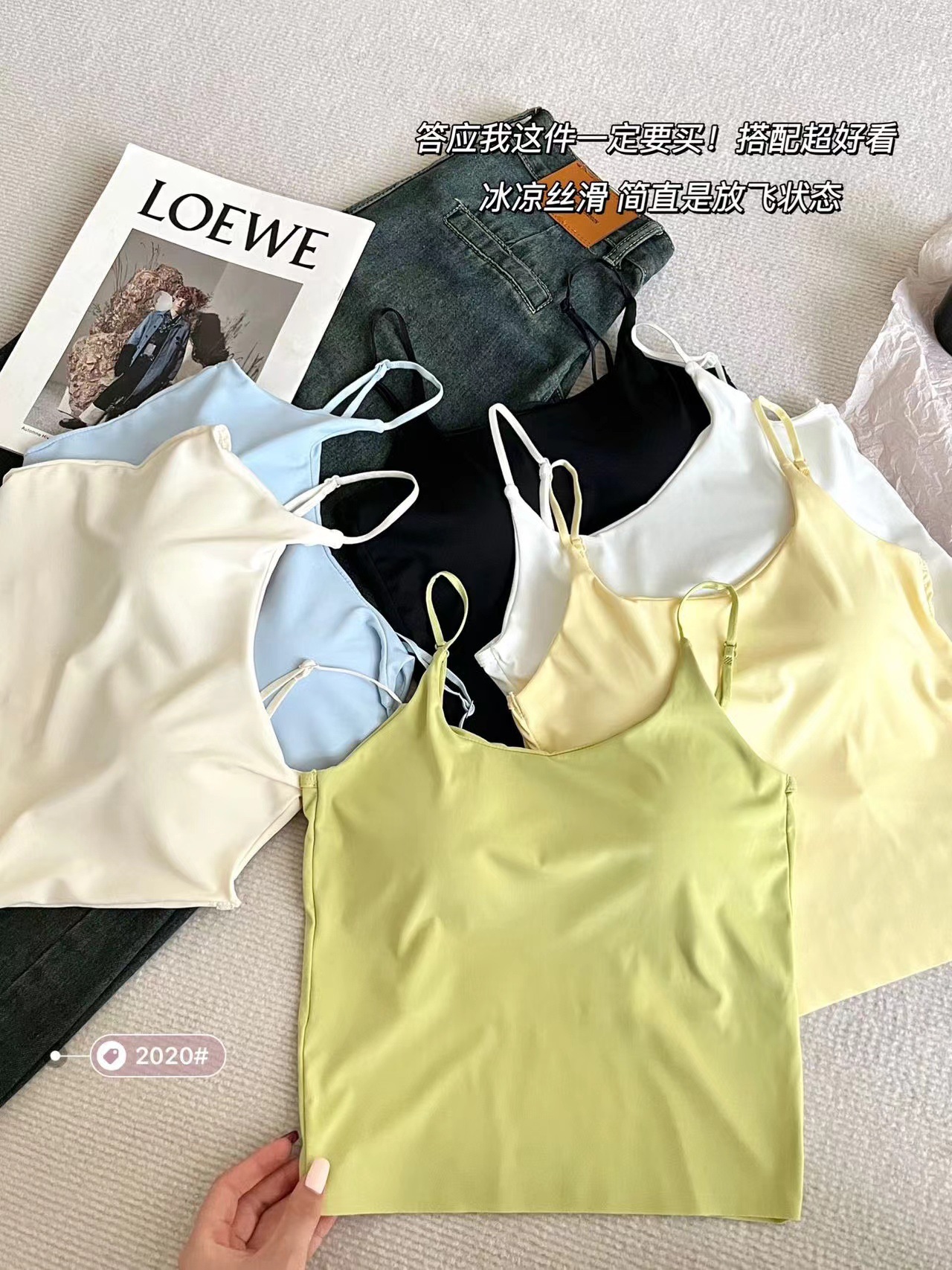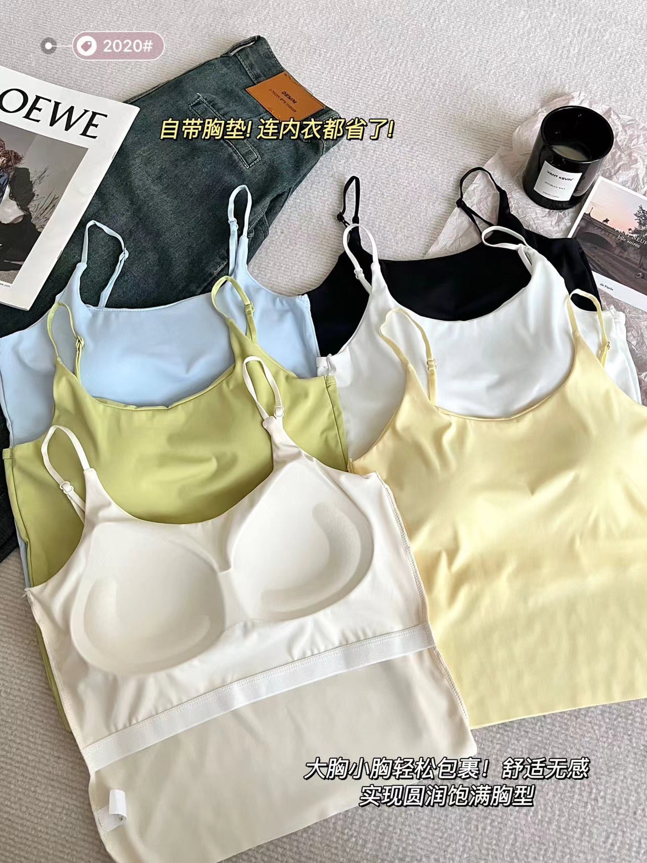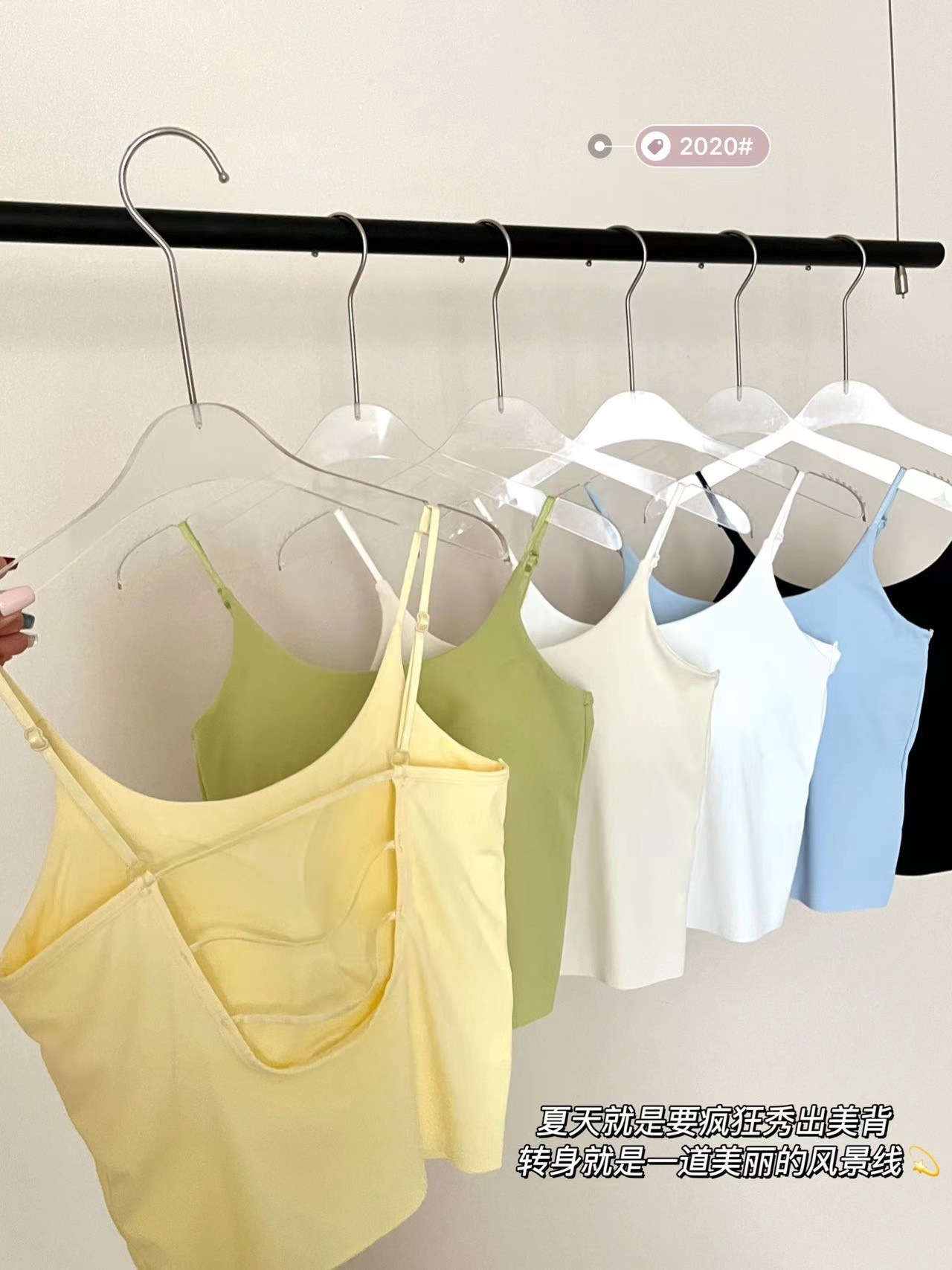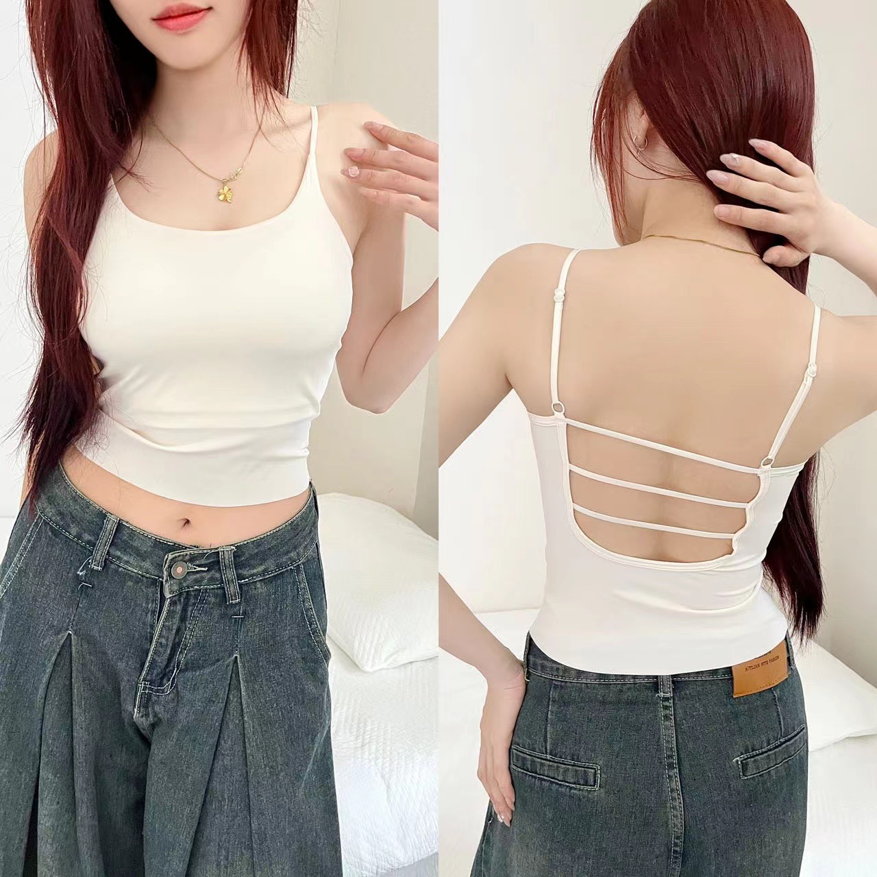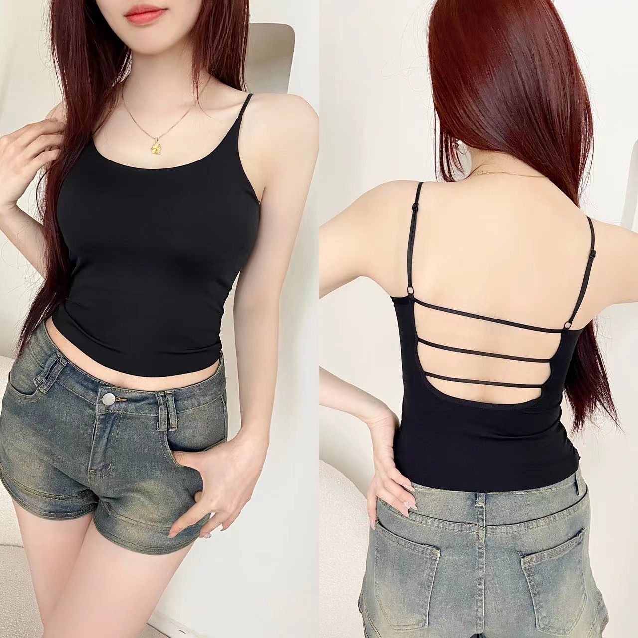여아용 신선하고 심플한 멜빵형 아름다운 백탑, 대형 U자형 중공 백리스 고정컵, 노출 방지, 편안하고 활용도가 높은 아우터웨어스토어 가기