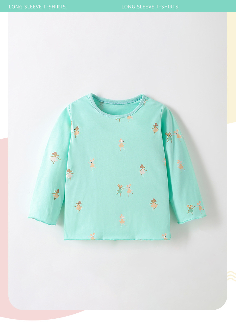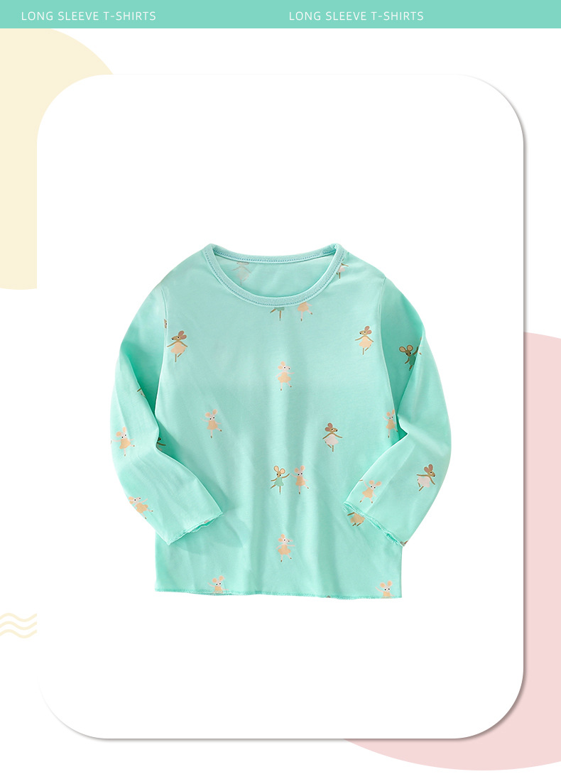 말위 소녀의 둥근 목 셔츠 가을과 겨울 새로운 바닥 셔츠 유럽과 미국 어린이 티셔츠 외국 스타일 아동복 인쇄스토어 가기