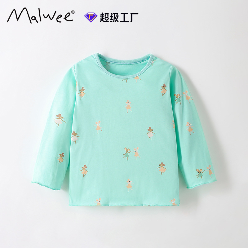 말위 소녀의 둥근 목 셔츠 가을과 겨울 새로운 바닥 셔츠 유럽과 미국 어린이 티셔츠 외국 스타일 아동복 인쇄