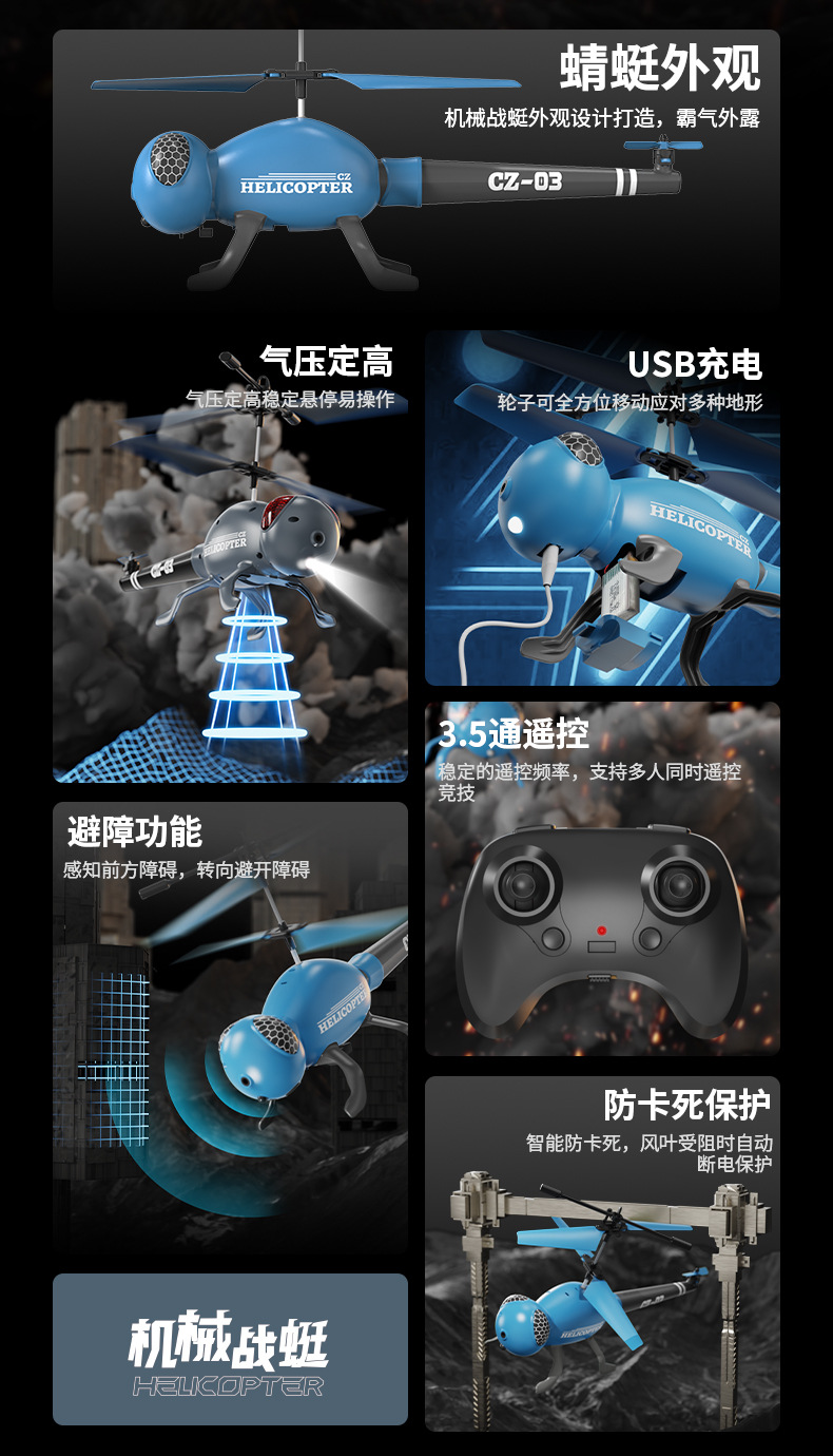 국경 간 새로운 CZ03 검은 개미 헬리콥터 원격 제어 항공기 긴 지구력 장애물 회피 항공기 어린이 장난감 도매