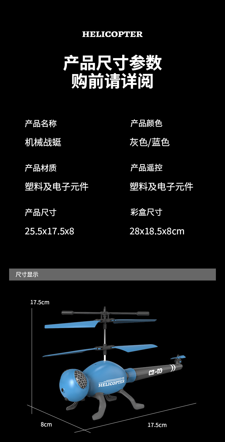 • 블루 CZ03 블랙 앤트 헬리콥터 2.5 패스