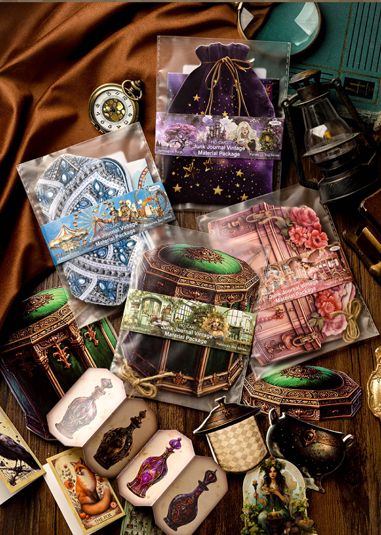 모 모 정크 저널 복고풍 소재 패키지 판도라의 매직 박스 시리즈 손 계정 DIY 콜라주 4스토어 가기