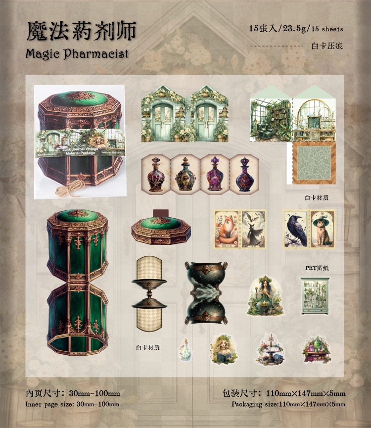 모 모 정크 저널 복고풍 소재 패키지 판도라의 매직 박스 시리즈 손 계정 DIY 콜라주 4