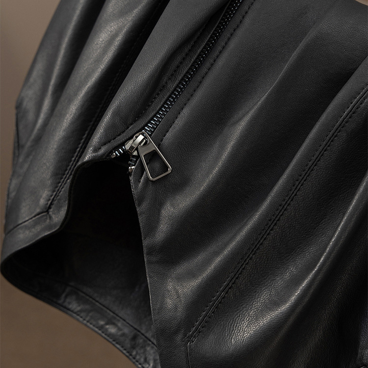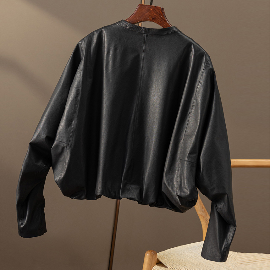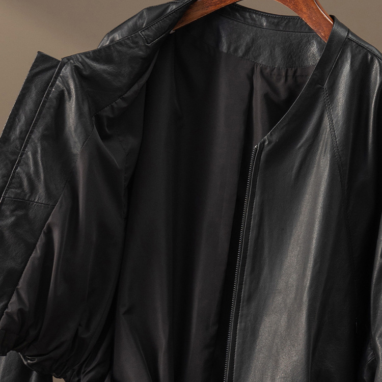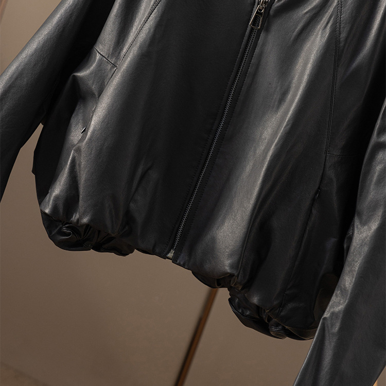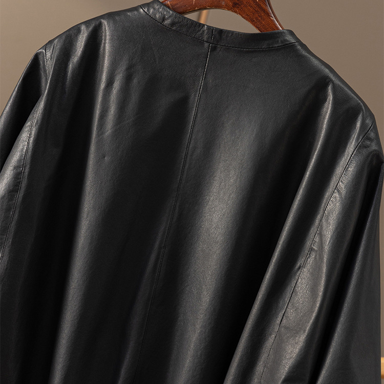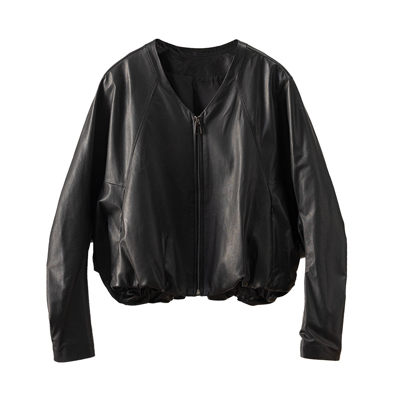 캐주얼 지퍼 대형 V 넥 카디건 양가죽 정품 가죽 자켓 여성 가을 및 겨울 새로운 올 매치 재킷 우아함