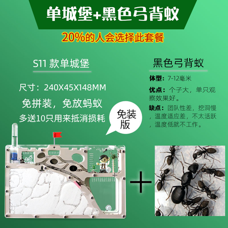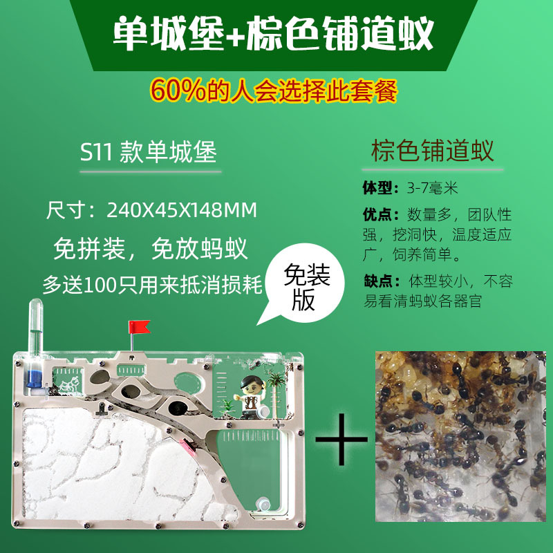 • 흰색 S11 성 + 도구 + 백 3개, 200개(개미 포장) + 개미 사료, 설치되지 않은 버전