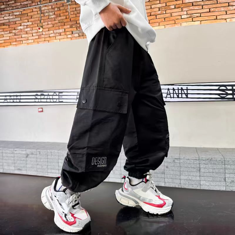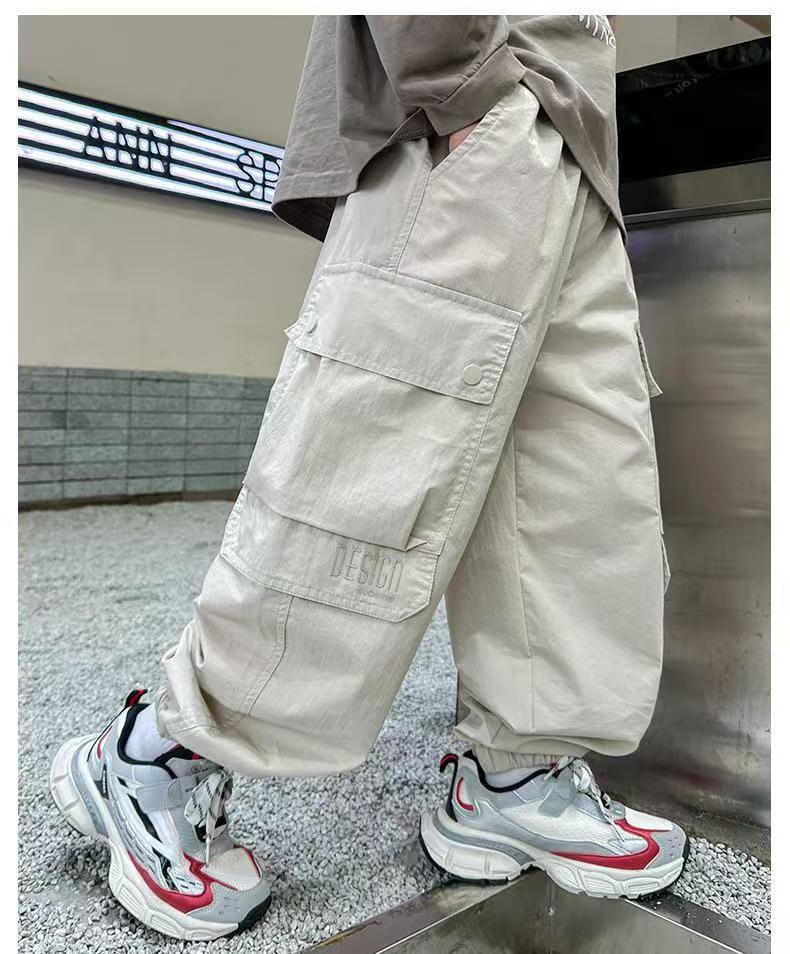 어린이 착용 소년 가을 착용 바지 프라이드 스트리트 크레인 바지 가을 2024 새로운 스타일 중 · 대형 어린이 봄과 가을 캐주얼 트렌디 바지