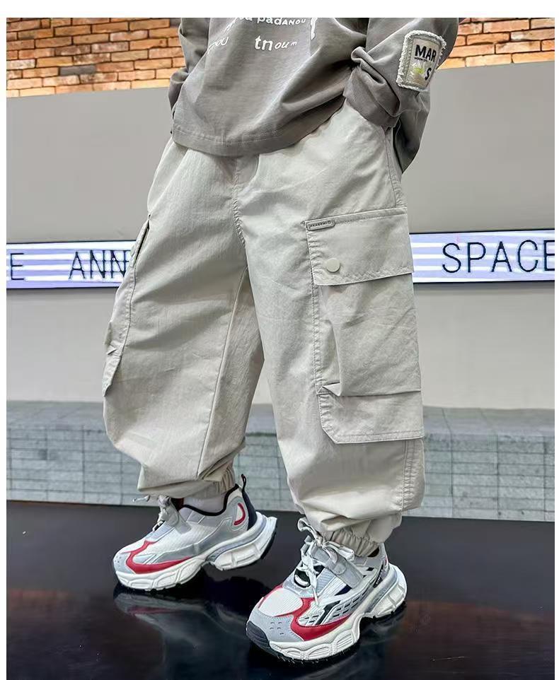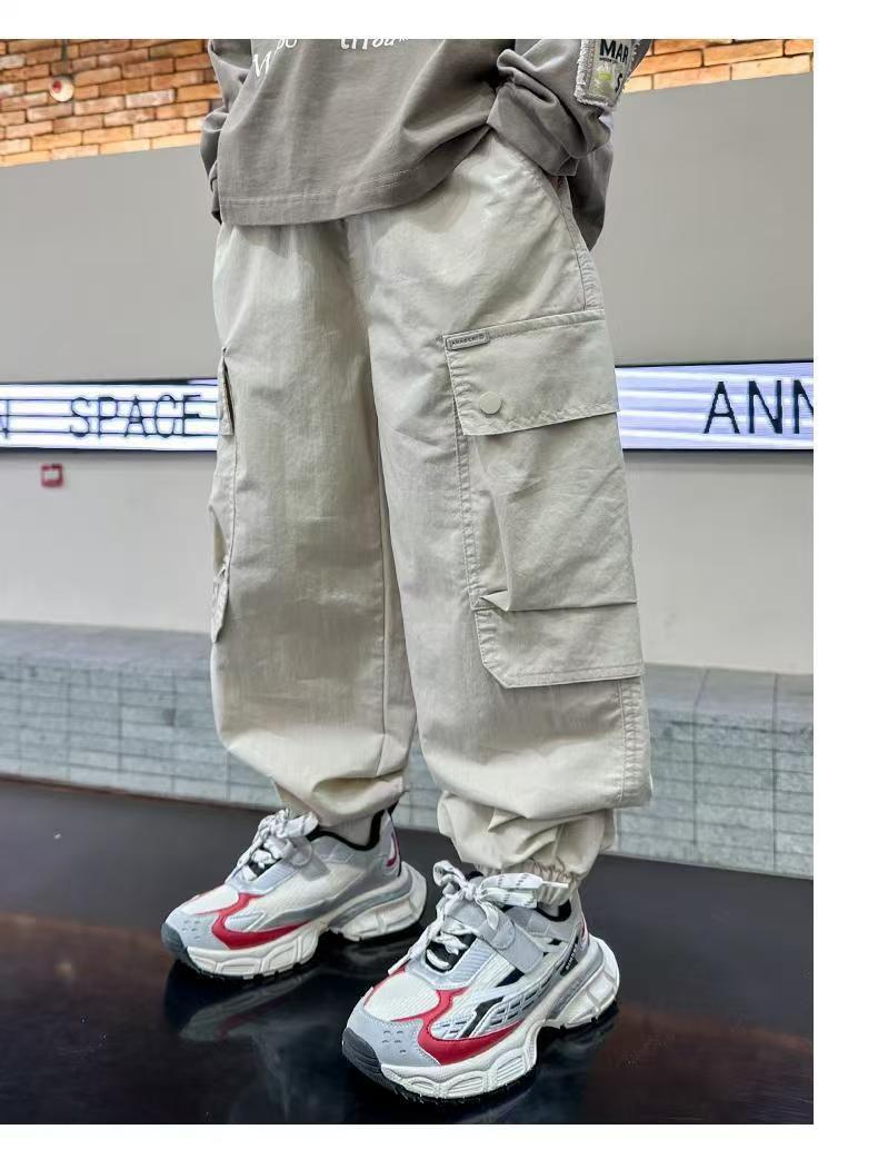 어린이 착용 소년 가을 착용 바지 프라이드 스트리트 크레인 바지 가을 2024 새로운 스타일 중 · 대형 어린이 봄과 가을 캐주얼 트렌디 바지스토어 가기