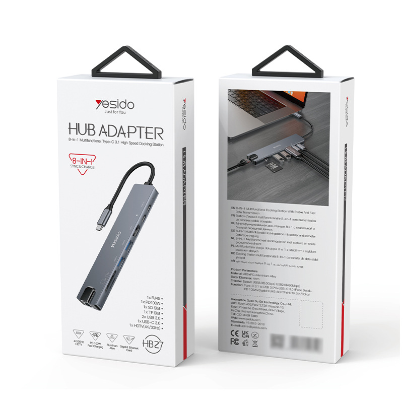 Yesido 8 대 1 멀티 포트 확장 도크 TypeC 다기능 PD100W 빠른 충전 허브 허브 국경 도매스토어 가기
