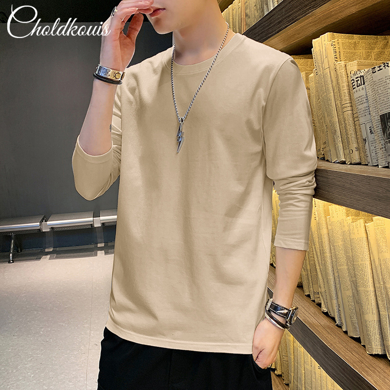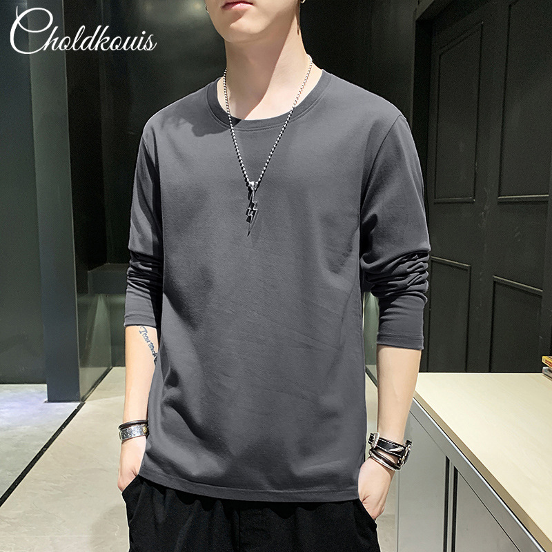 200g 무거운 면 긴 소매 티셔츠 남자의 느슨한 플러스 사이즈 가을과 겨울 새로운 캐주얼 간단한 크루 넥베이스 셔츠스토어 가기