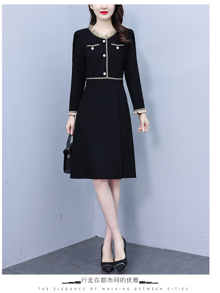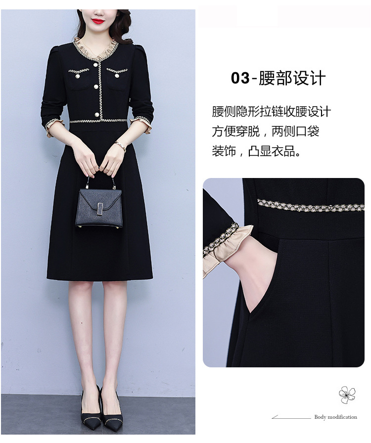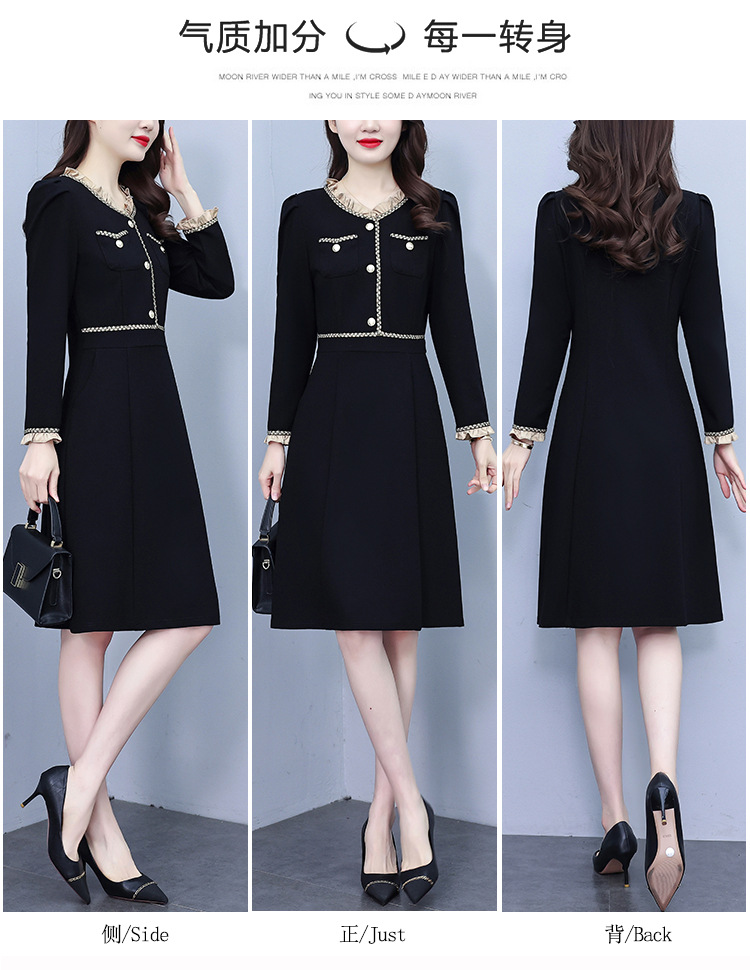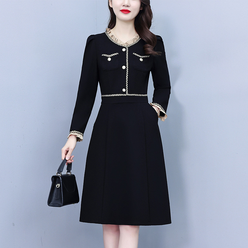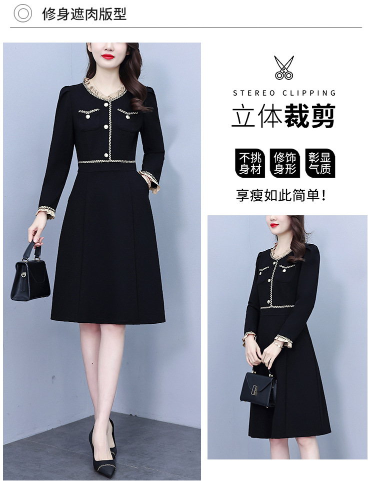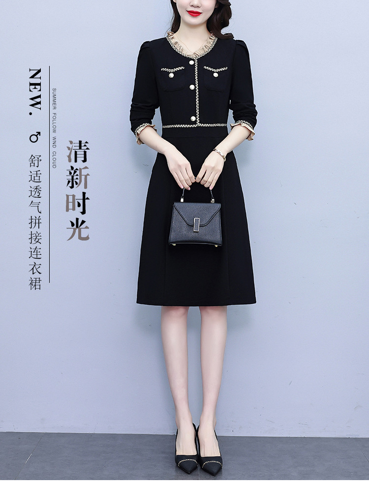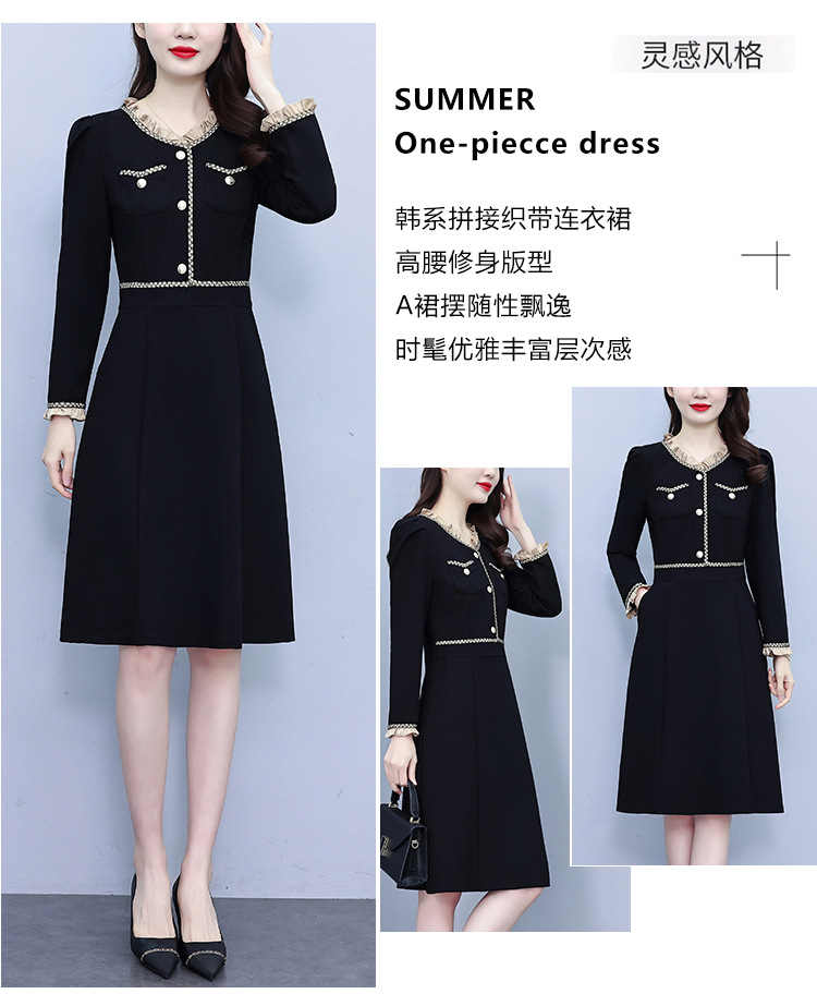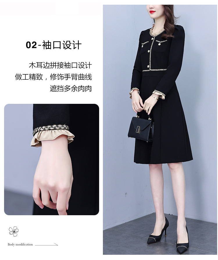 플러스 사이즈 여성의 2024 가을 새로운 작은 스타일 긴 소매 바느질 슬림 플러스 사이즈 원피스스토어 가기