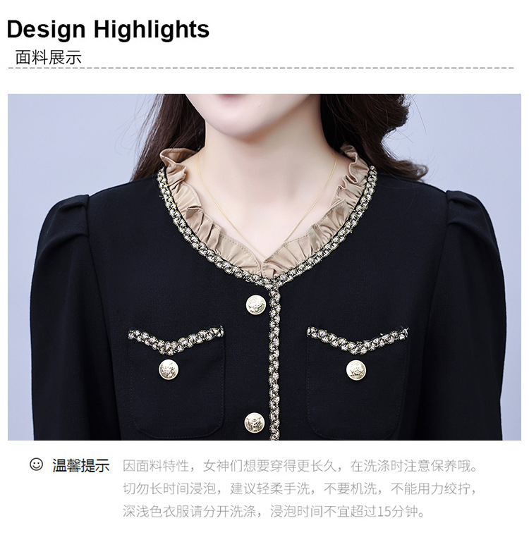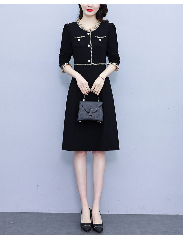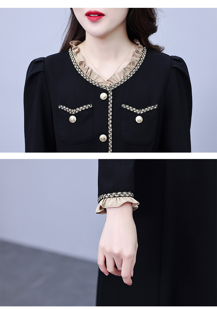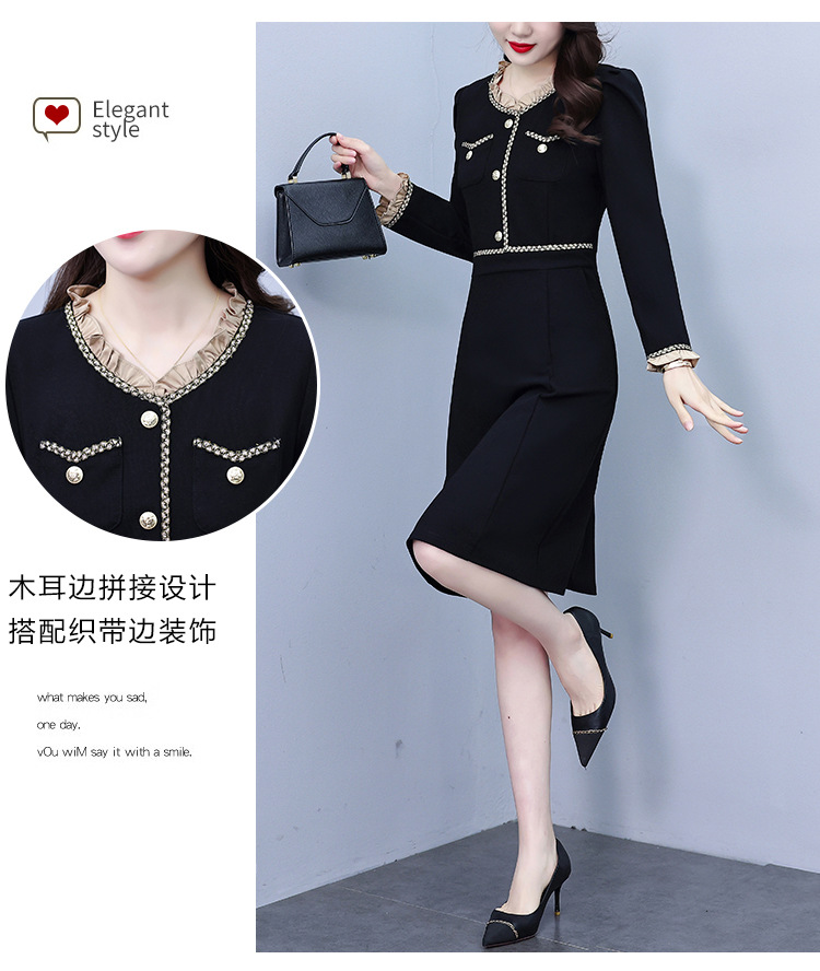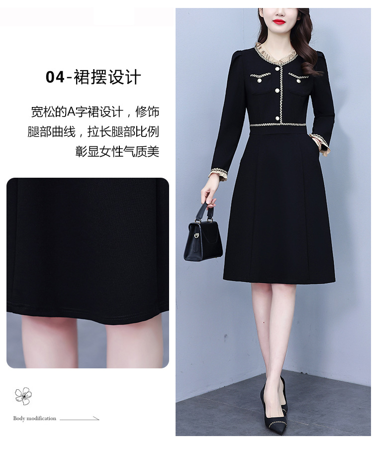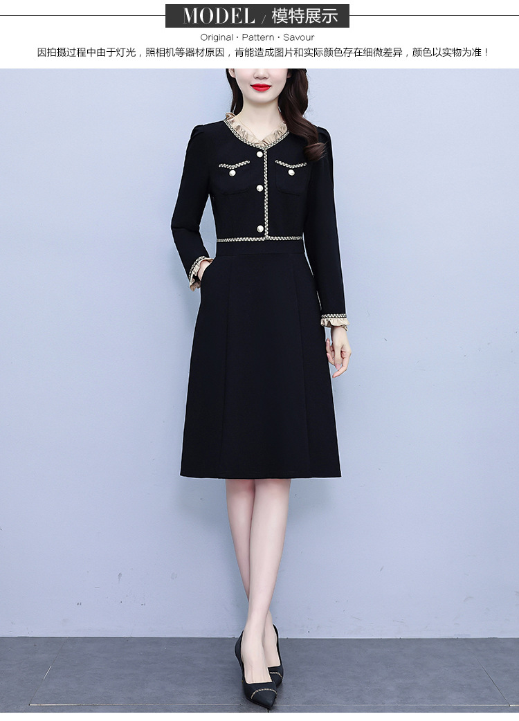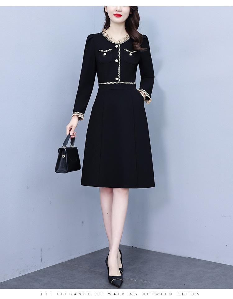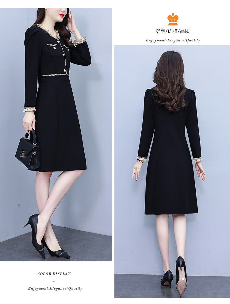 플러스 사이즈 여성의 2024 가을 새로운 작은 스타일 긴 소매 바느질 슬림 플러스 사이즈 원피스스토어 가기