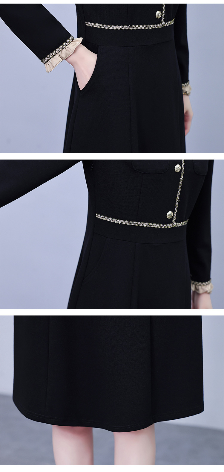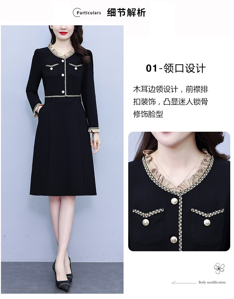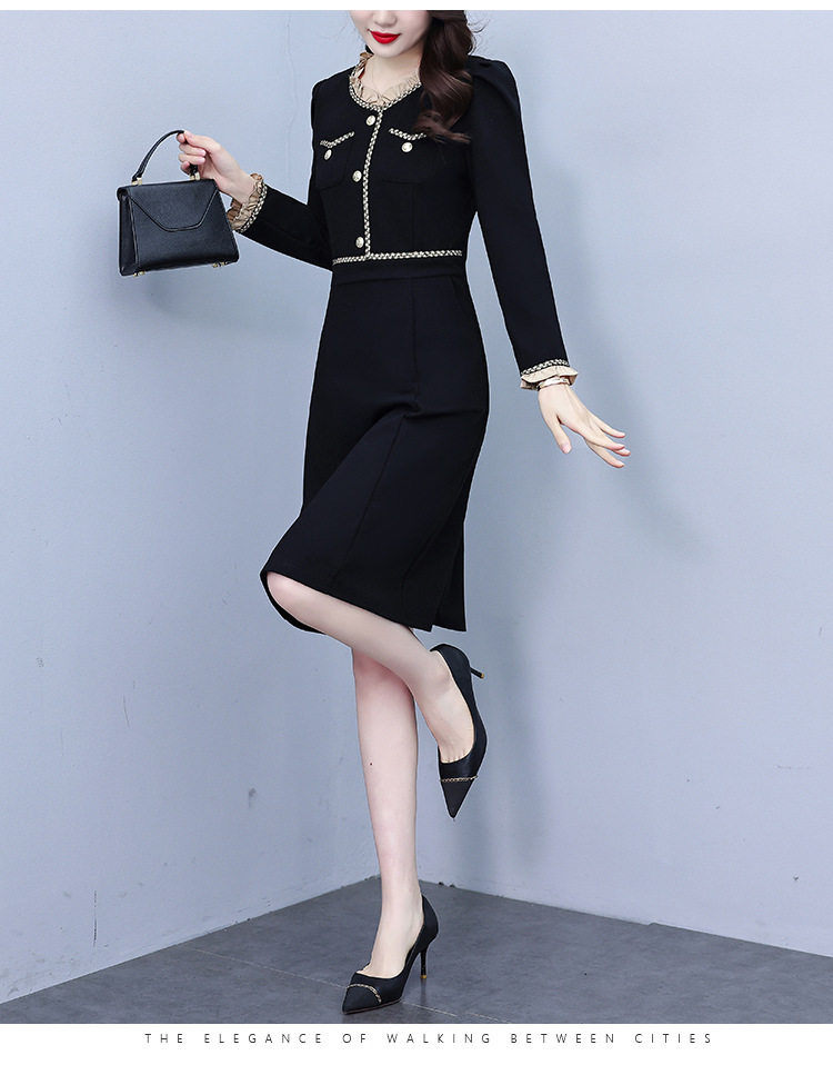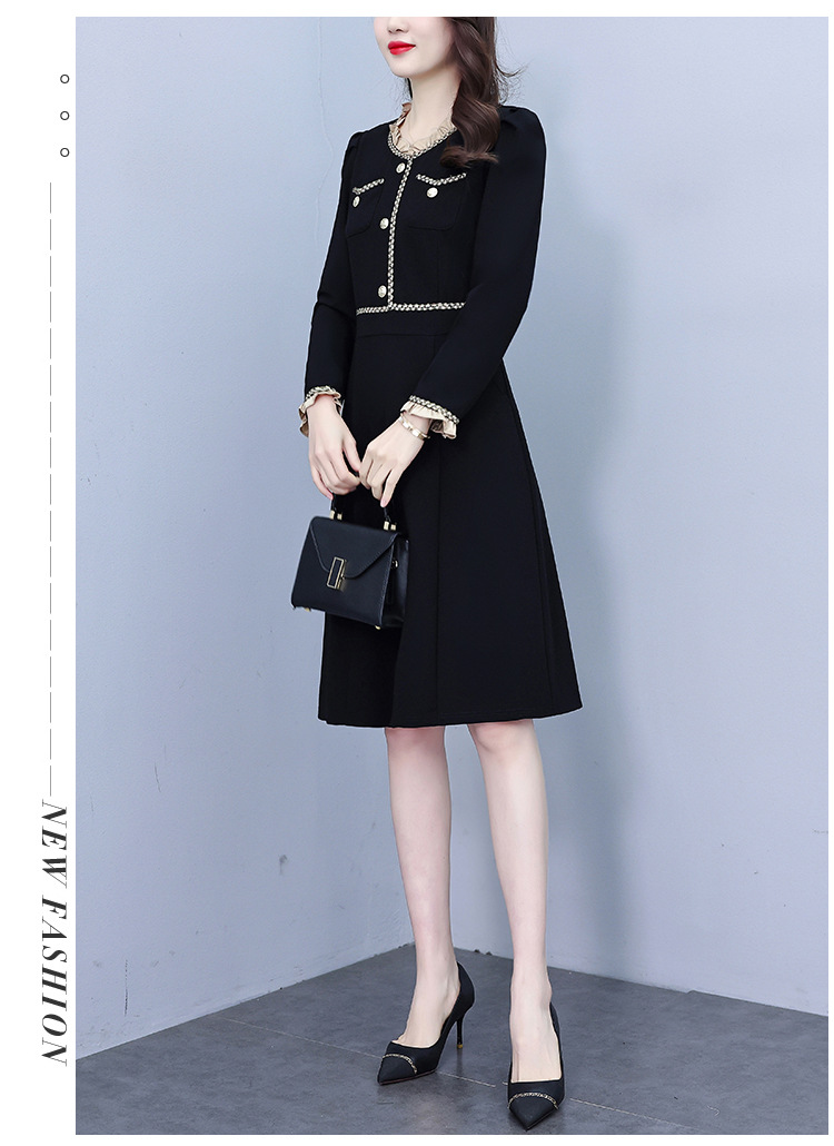 플러스 사이즈 여성의 2024 가을 새로운 작은 스타일 긴 소매 바느질 슬림 플러스 사이즈 원피스
