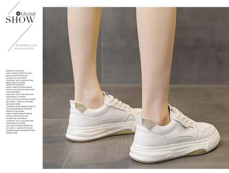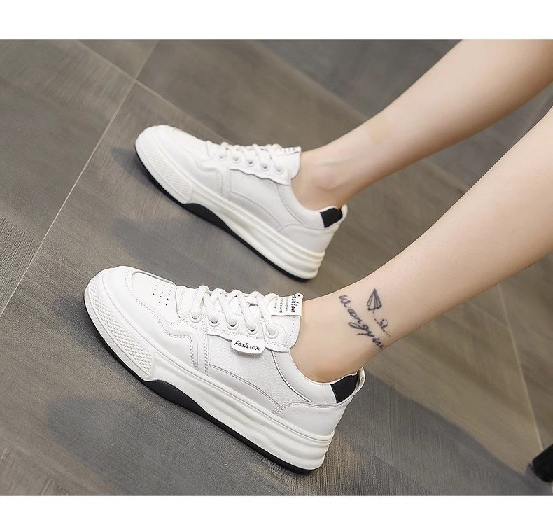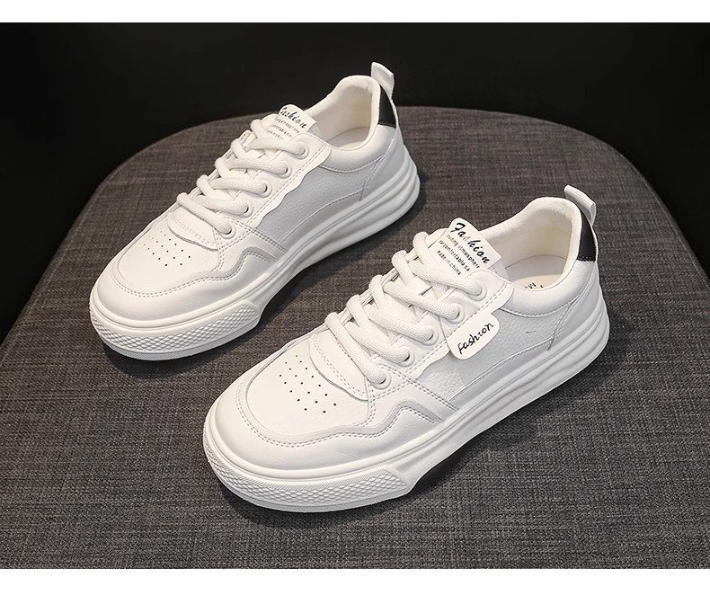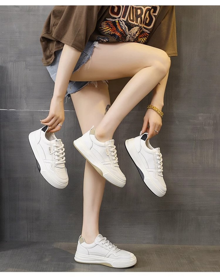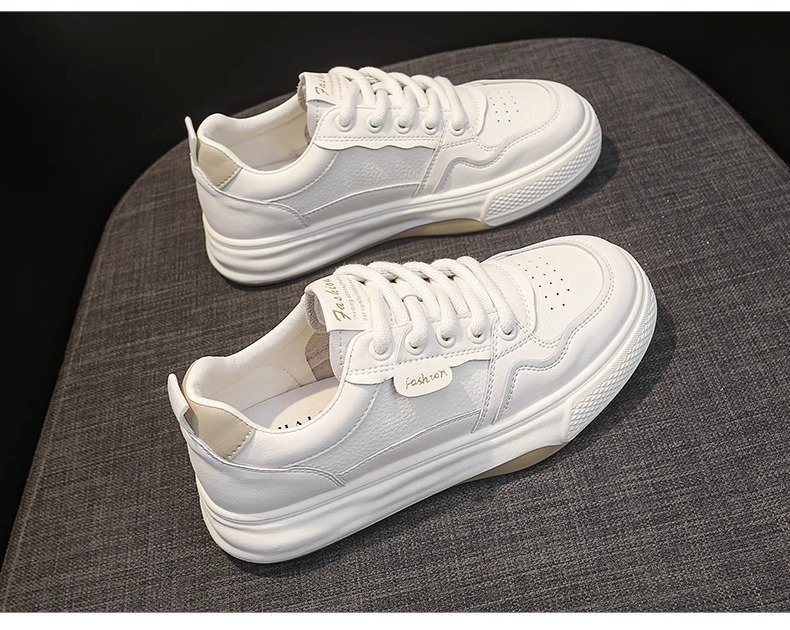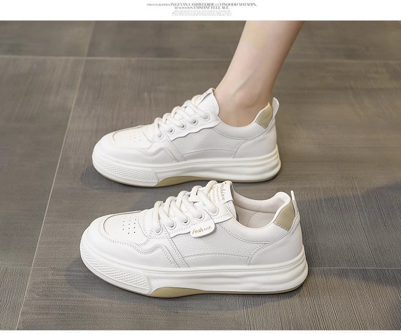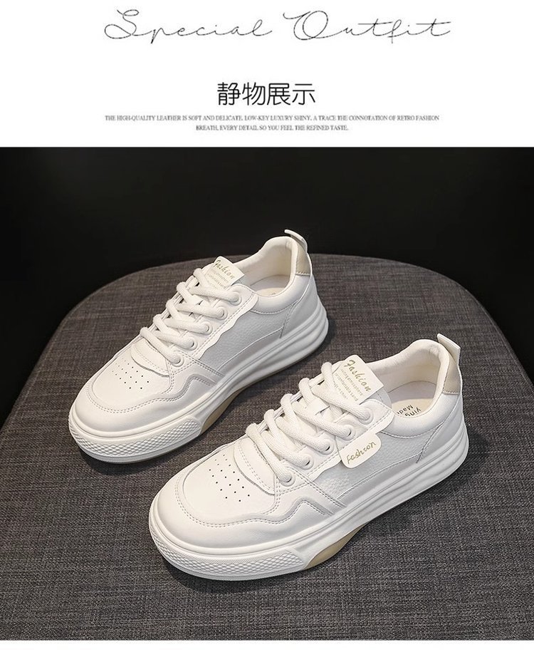 두꺼운 밑창 패션 다재다능한 흰색 신발 여성의 2024 가을 새로운 다용도 가죽 캐주얼 스포츠 로우 탑 보드 신발스토어 가기