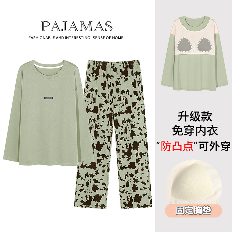 가슴 패드가 달린 잠옷 여성의 봄과 가을면 긴 소매 가을 여성의 2024 새로운 느슨한 플러스 사이즈 홈 의류 세트스토어 가기