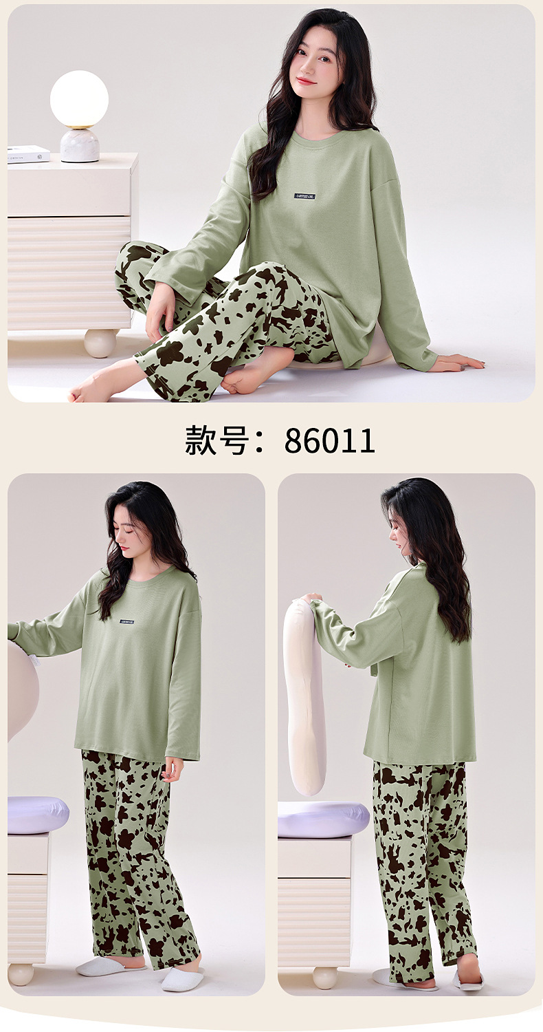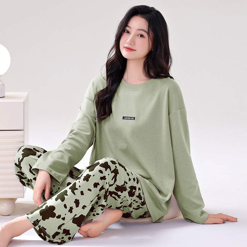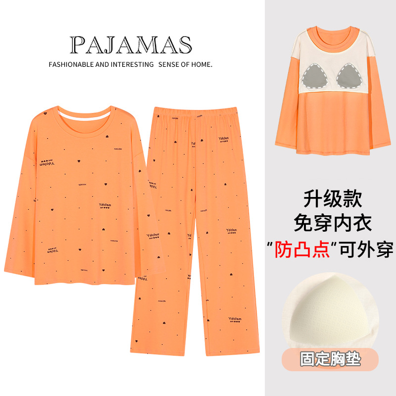 가슴 패드가 달린 잠옷 여성의 봄과 가을면 긴 소매 가을 여성의 2024 새로운 느슨한 플러스 사이즈 홈 의류 세트