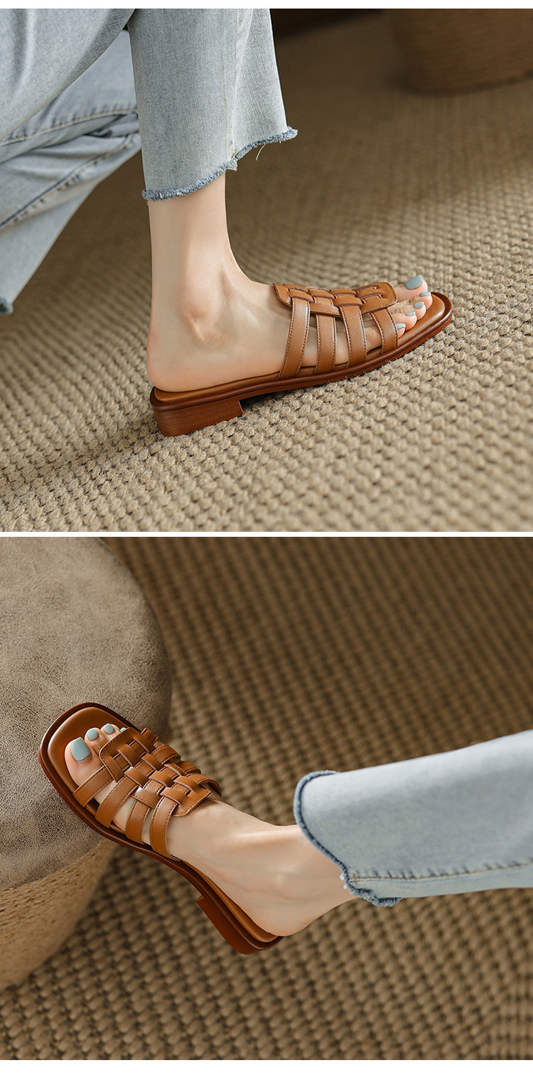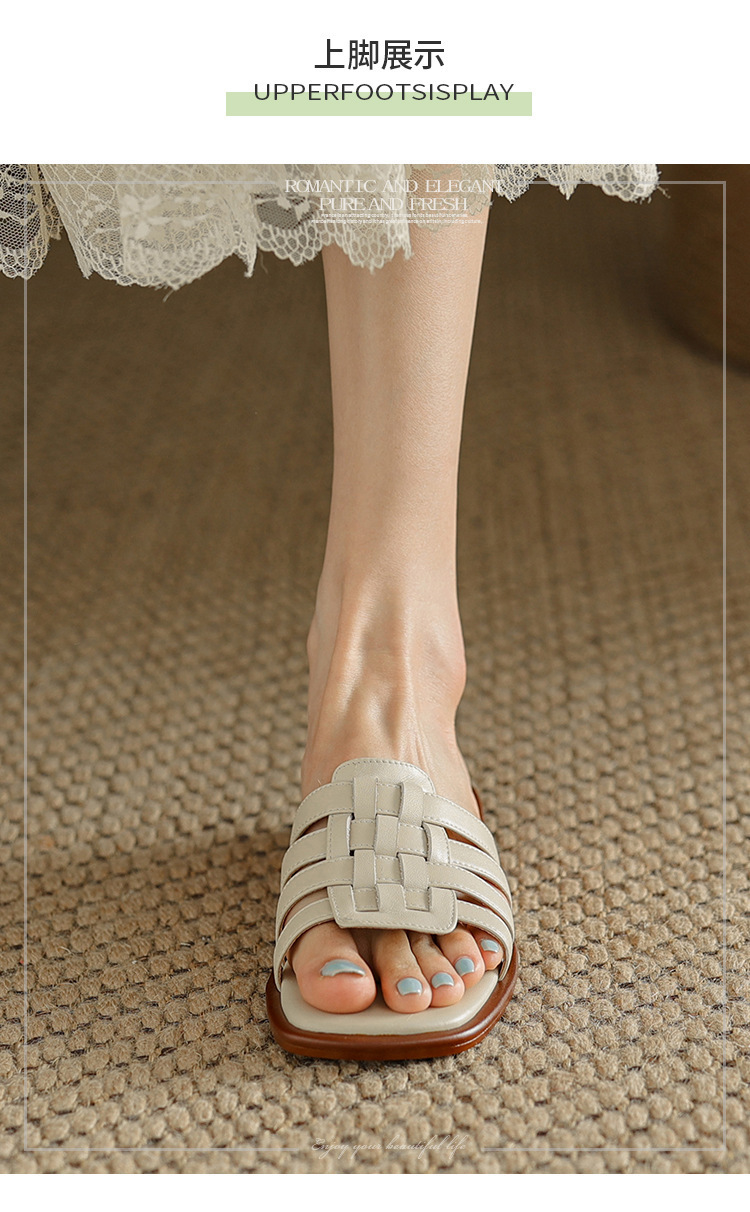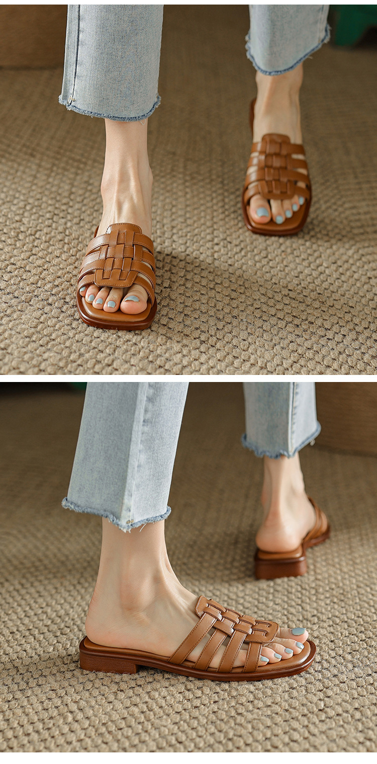 빈티지 로마 신발 여성용 슬라이더 슬리퍼 여성용 2024 여름 아우터 플랫 울트라 파이버 소프트 가죽 슬리퍼 여성용 헤어스토어 가기