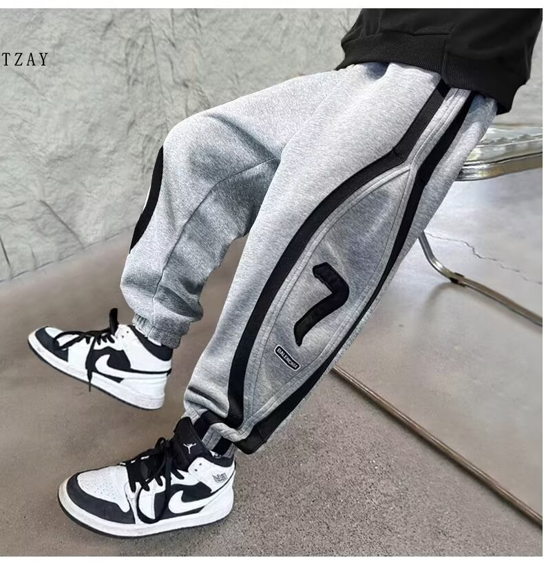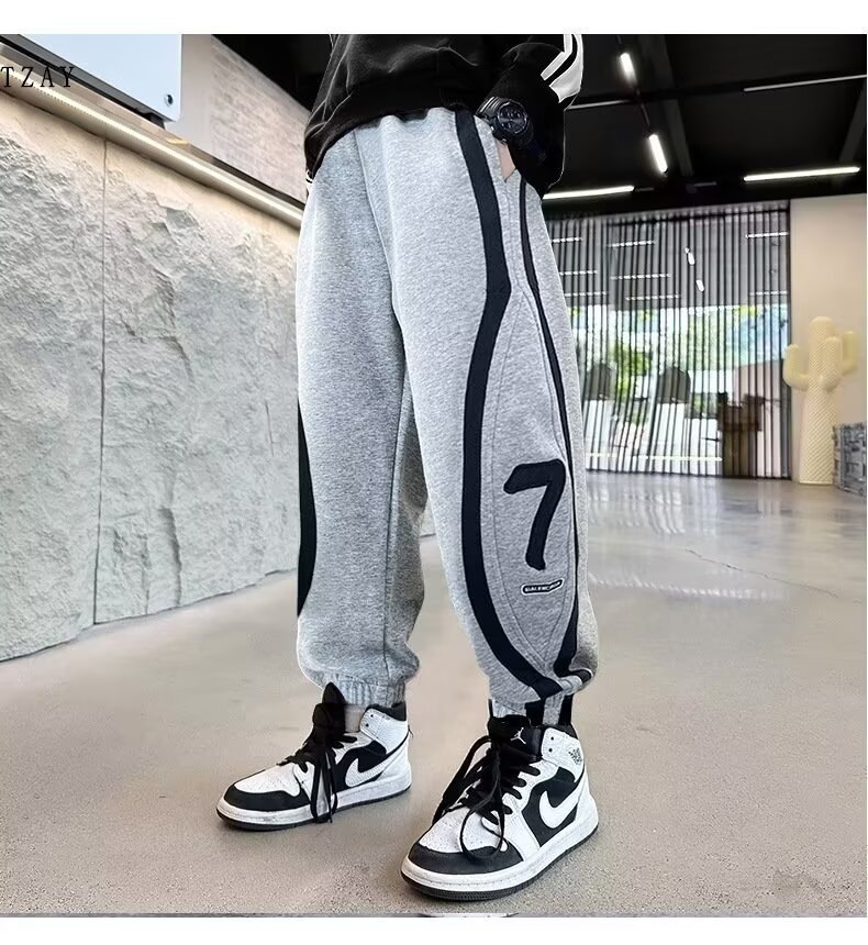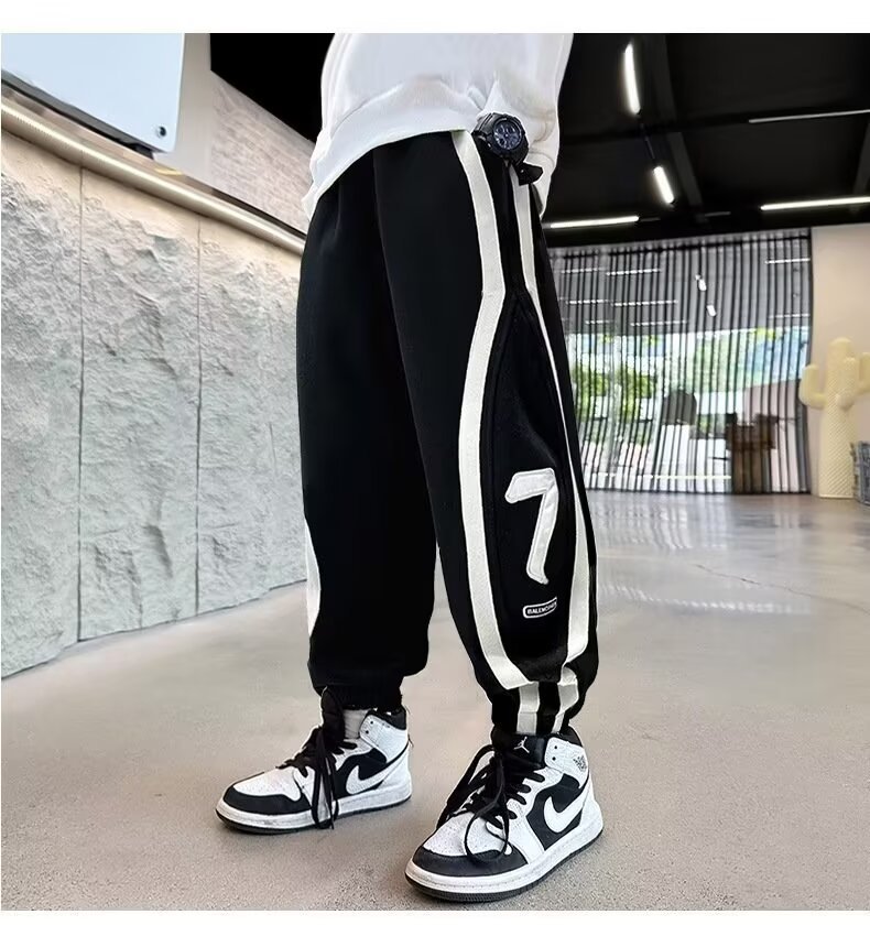 소년 바지 새로운 중국 스타일 캐주얼 바지 2024 봄과 가을 국가 조수 중 큰 어린이 스포츠 바지 잘 생긴