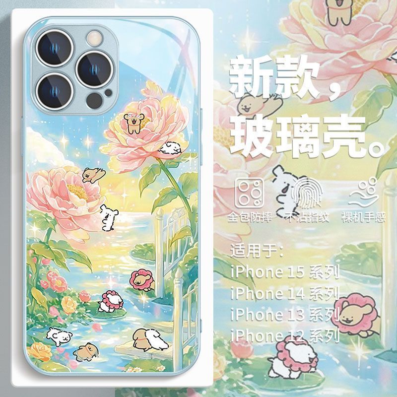 Apple 16 라인 강아지 휴대폰 케이스 iPhone14Promax 여름 13 크리에이티브 12 만화 11 유리 하드 케이스스토어 가기