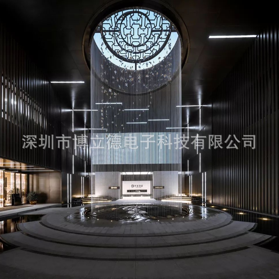 디지털 워터 커튼 그래픽 자막이있는 디지털 워터 커튼 CNC 실내 및 실외 호텔 로비 장식 워터 커튼