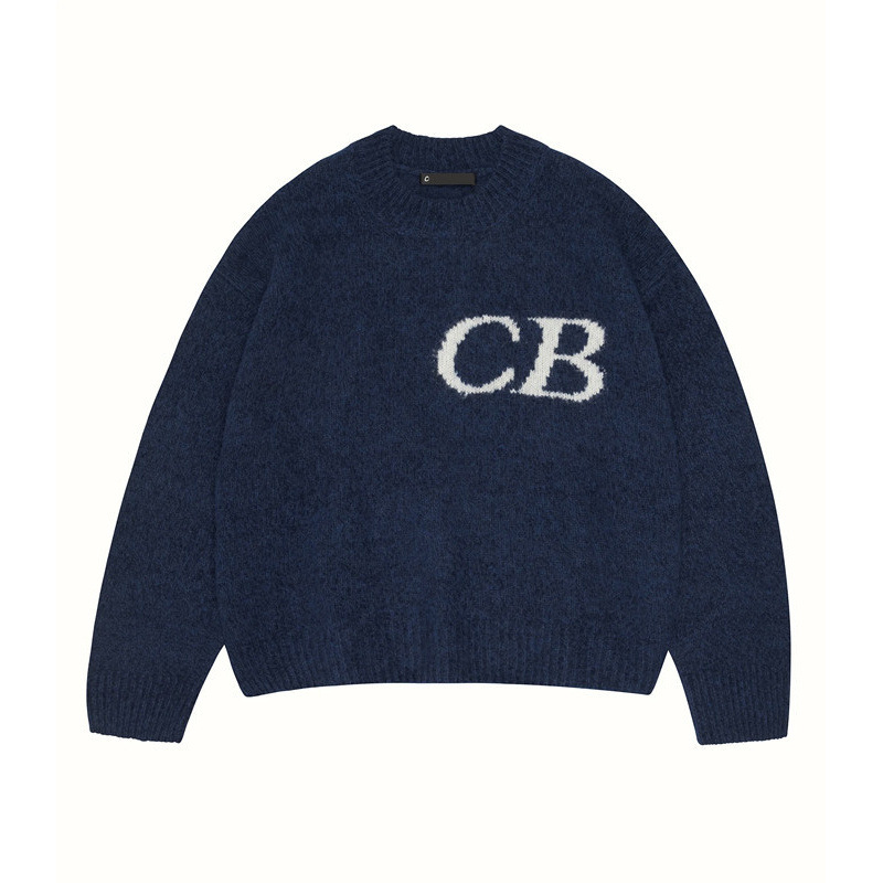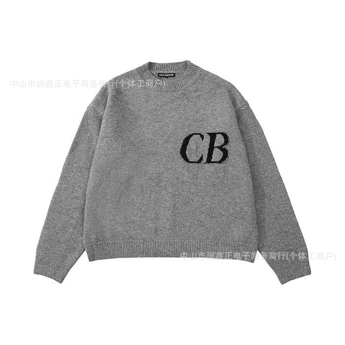 가을과 겨울 새로운 틈새 미니멀리스트 편지 로고 자카드 느슨한 크루 넥 스웨터 하이 스트리트 패션 브랜드 울 바지 세트스토어 가기