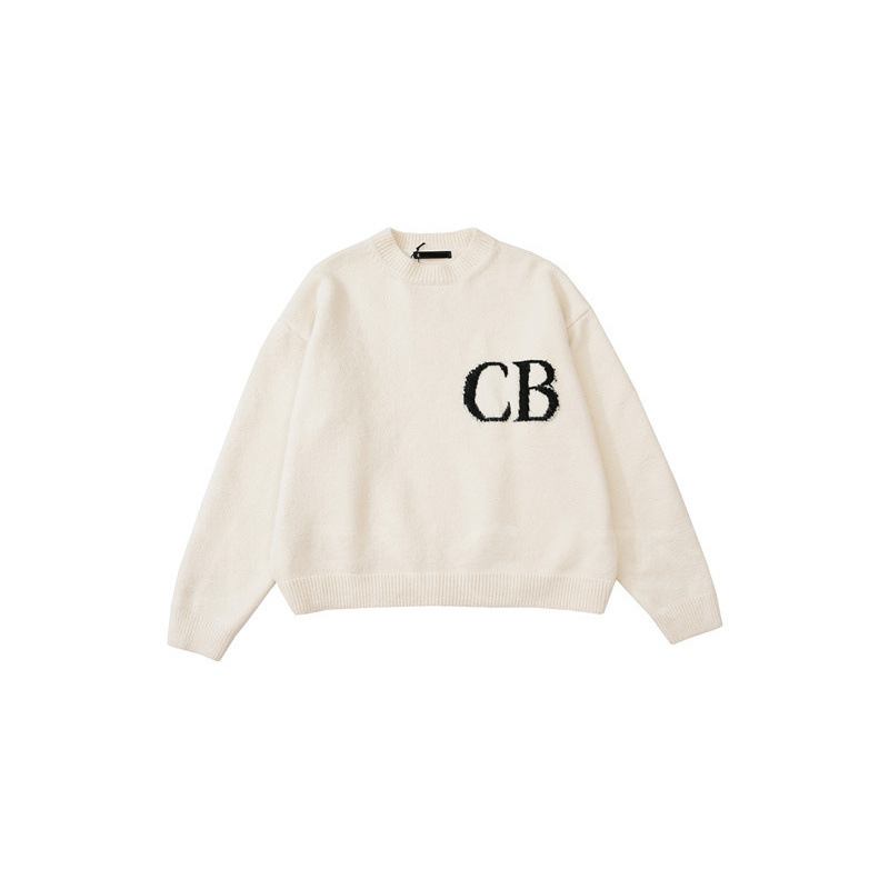 가을과 겨울 새로운 틈새 미니멀리스트 편지 로고 자카드 느슨한 크루 넥 스웨터 하이 스트리트 패션 브랜드 울 바지 세트