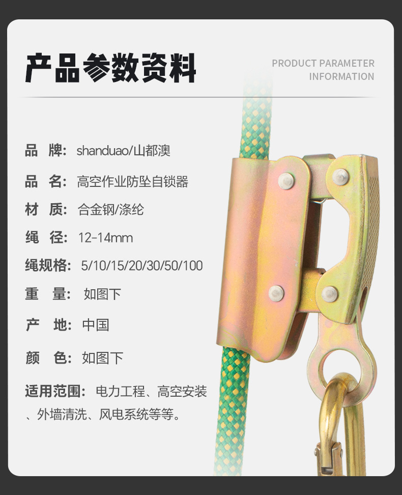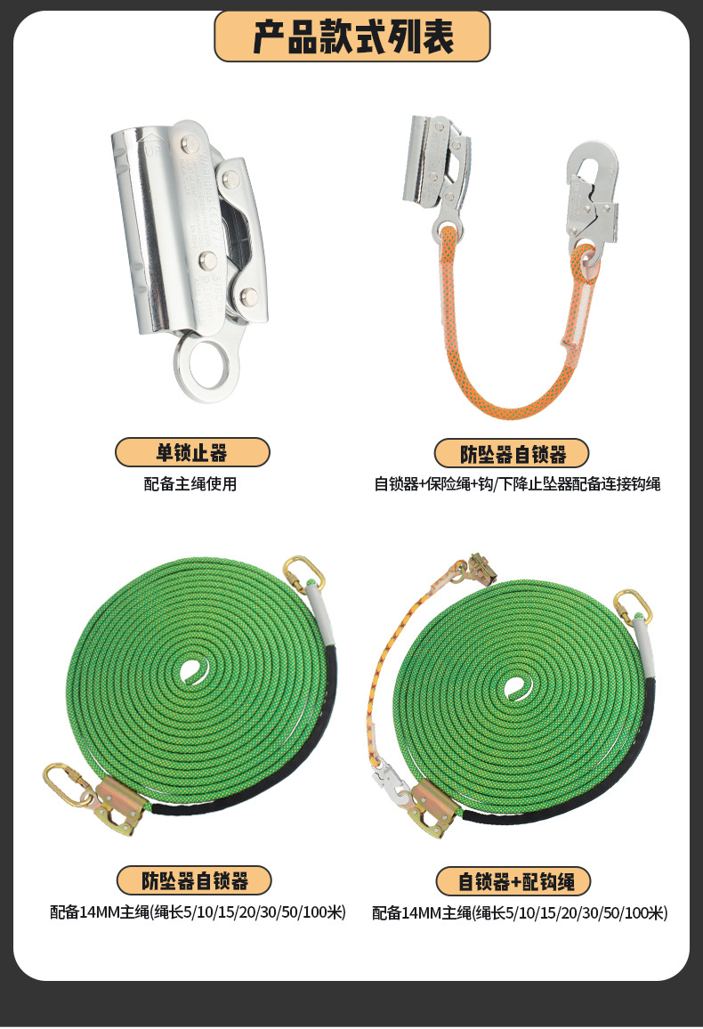 • 14mm 녹색 메인 로프 100m + 소꼬리 로프 자동 잠금
