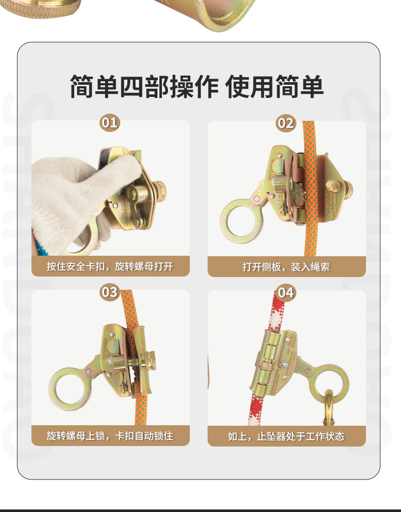 • 안전벨트 + 아연 채취 개구부 자동 잠금 장치 + 로프 + O자형 후크