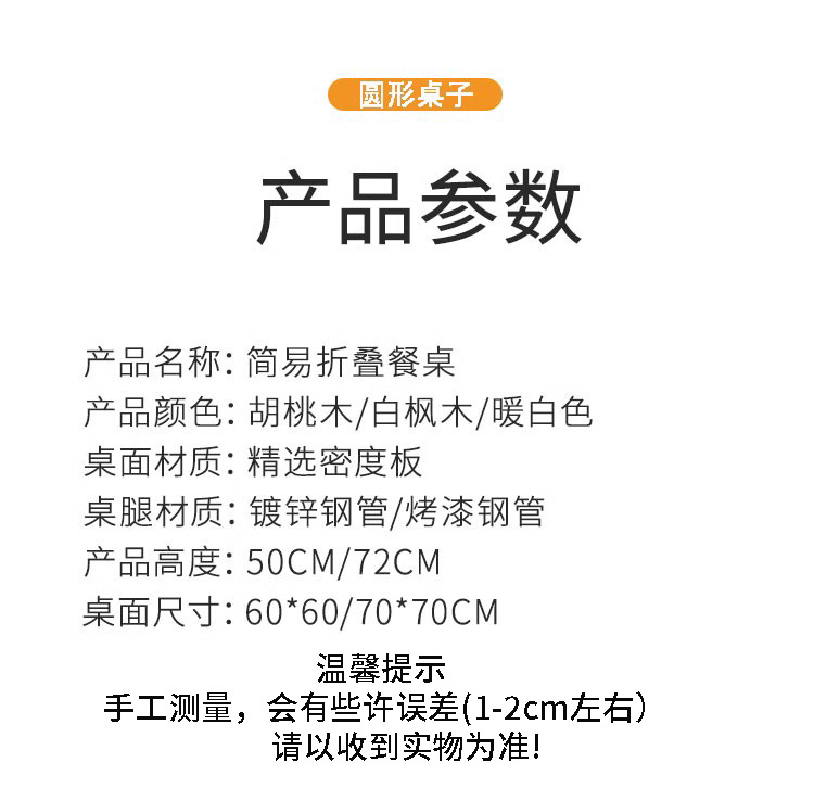 원형 접이식 식탁, 가정용 소형 아파트 식사용, 거실 및 야외 사용 가능, 간단한 소형 원형 테이블, 접이식스토어 가기