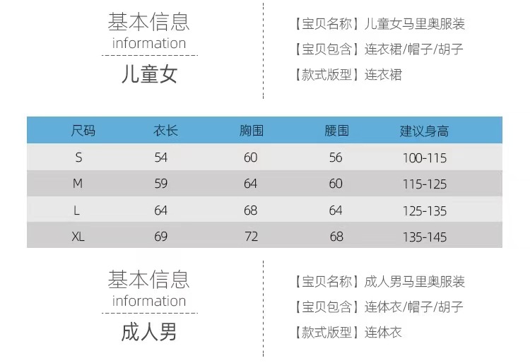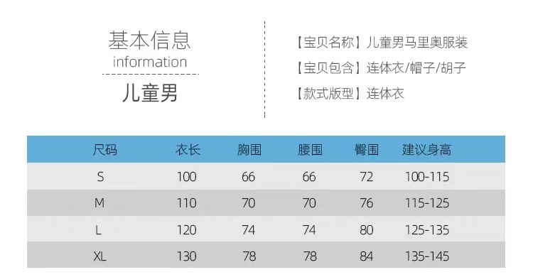 할로윈 코스프레 의상 마리오 부모-자식 정장 댄스 공연 의상 마리오 어린이 의상