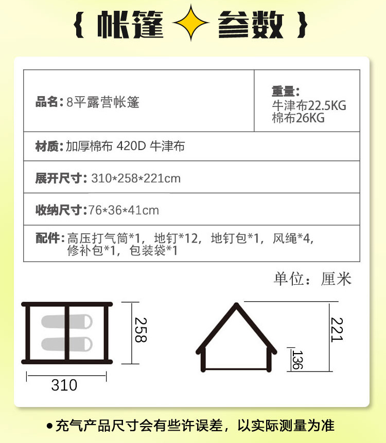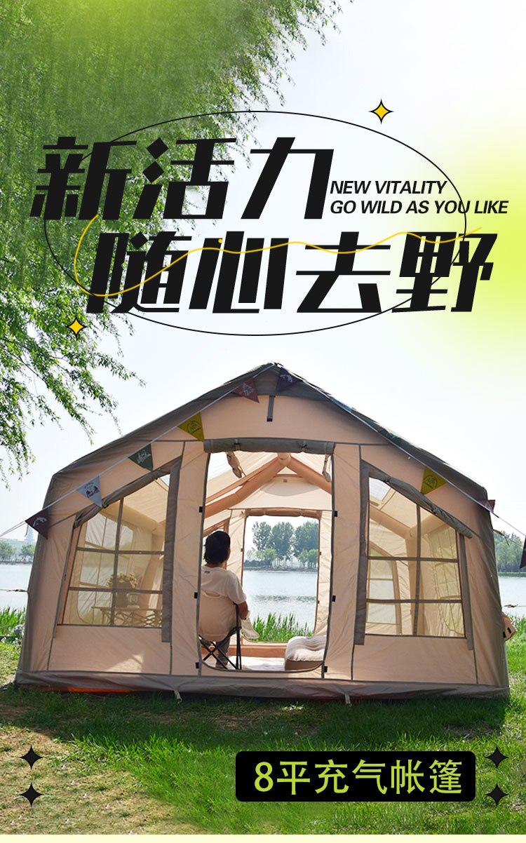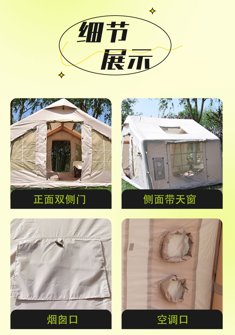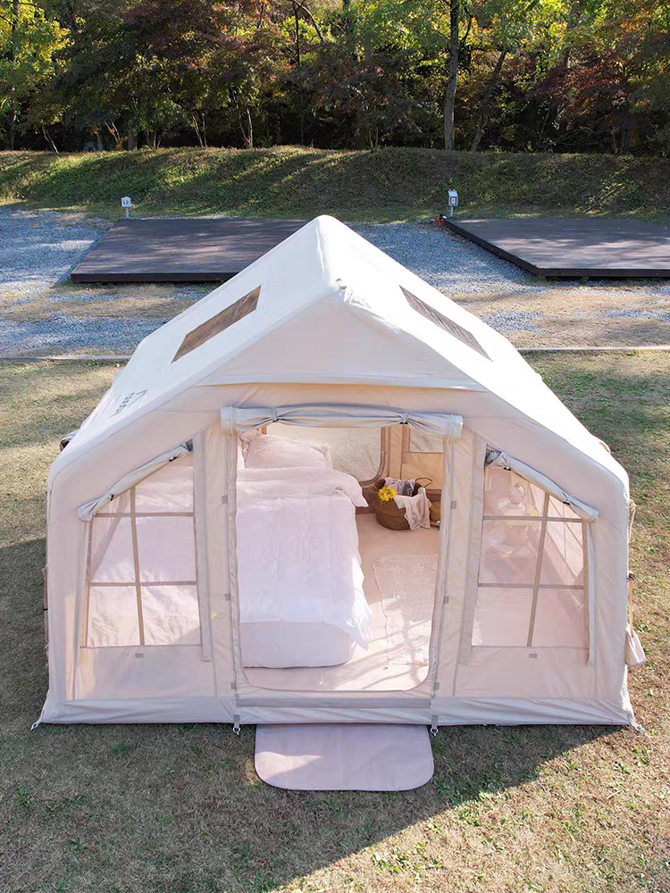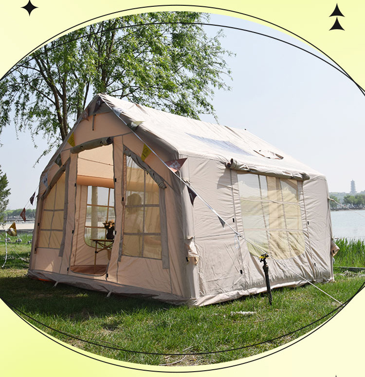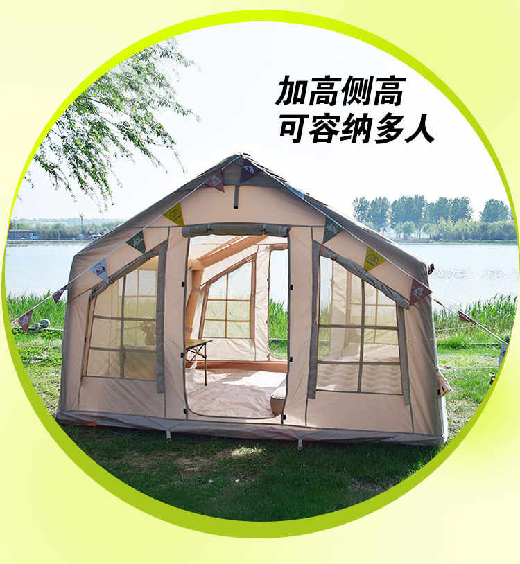 8평방미터 공기주입식 텐트, 가을 겨울 보온, 봄 여름 방수 및 자외선 차단, 두꺼운 캠핑 여행용 야외 자동 공기주입식 텐트스토어 가기
