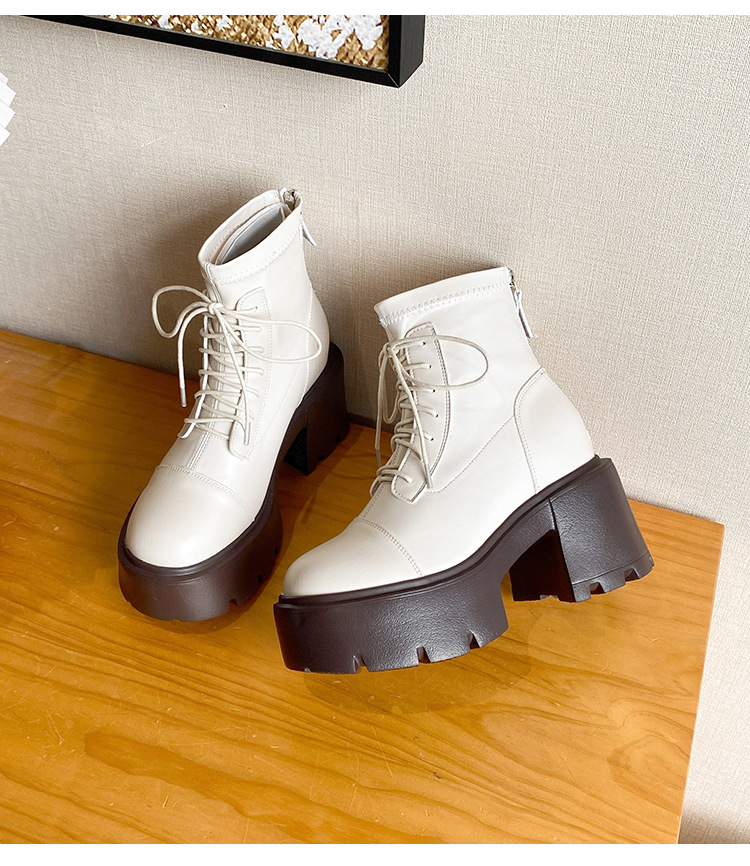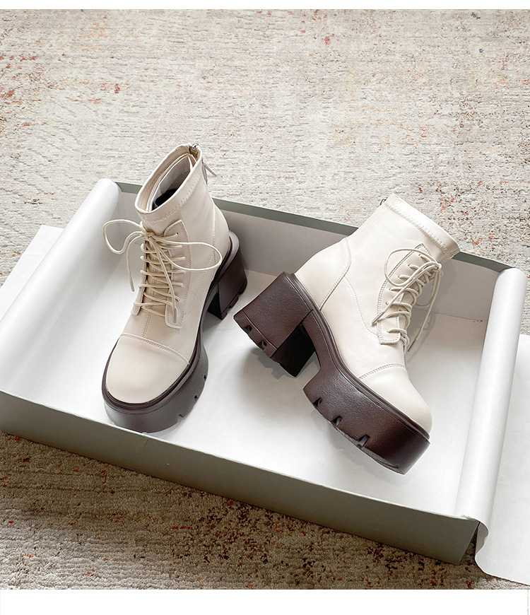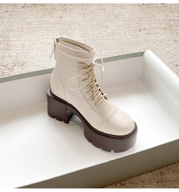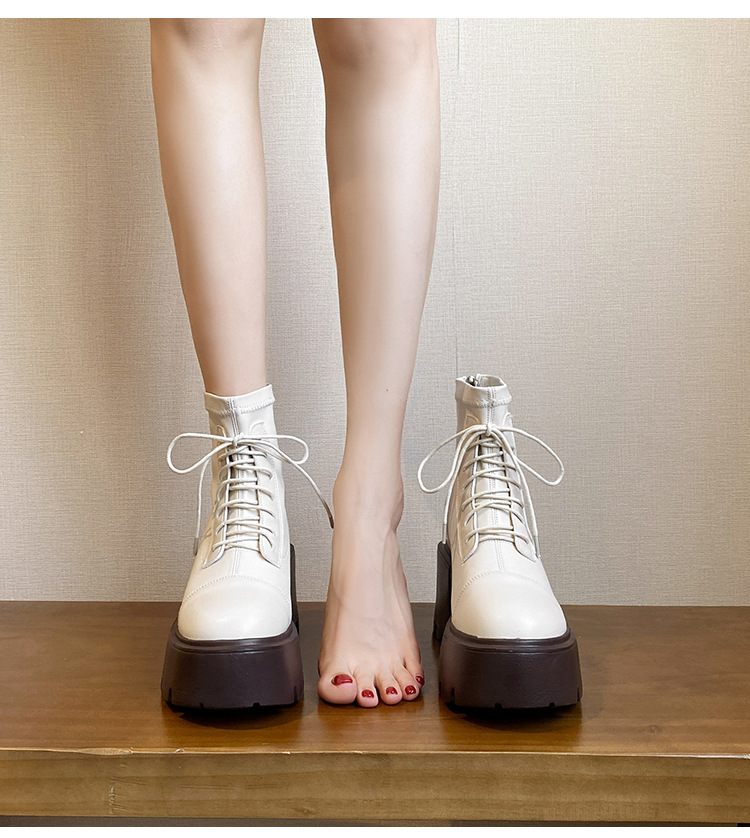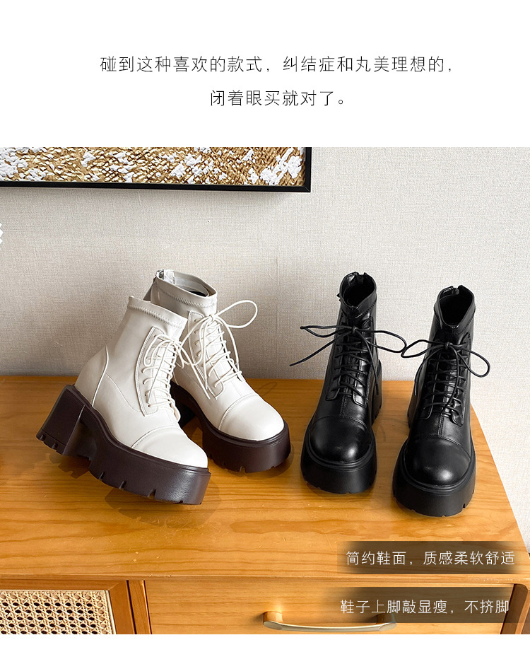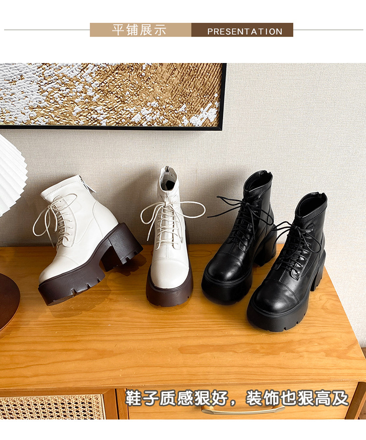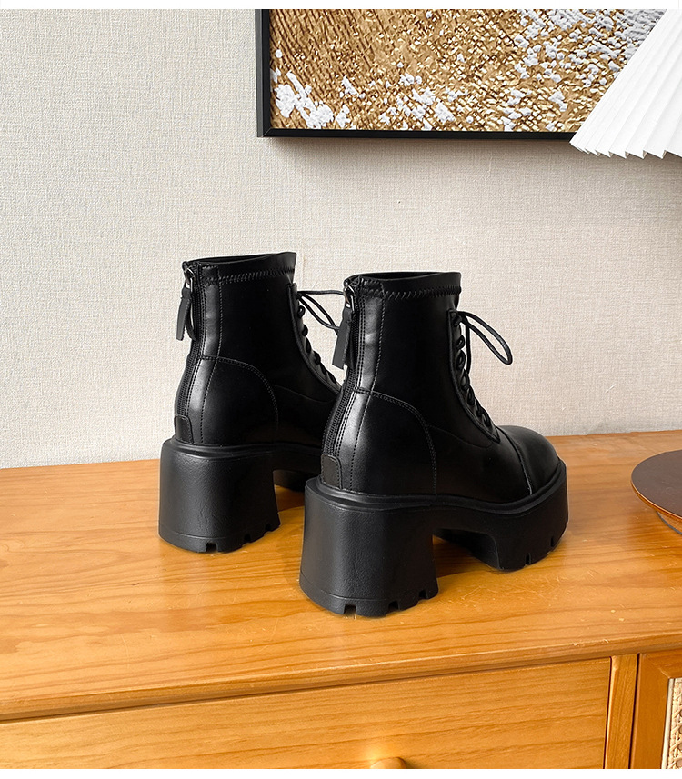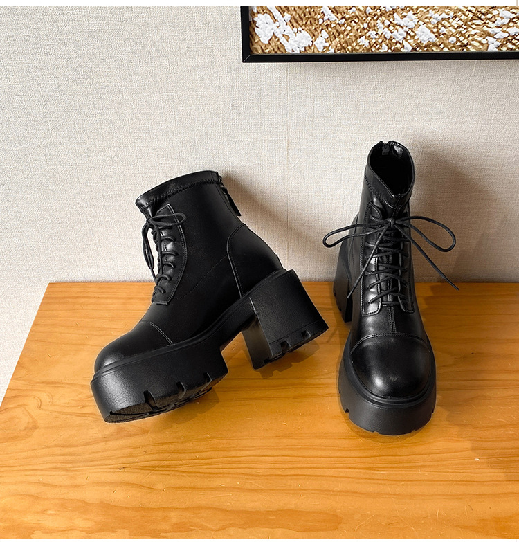 12CM 두꺼운 바닥 두꺼운 힐 높은 마틴 부츠 여성의 2024 새로운 영국 스타일 슬리밍 실린더 얇은 부츠