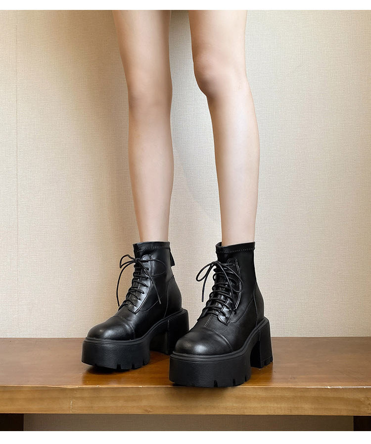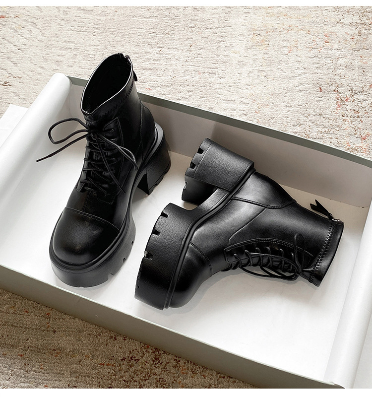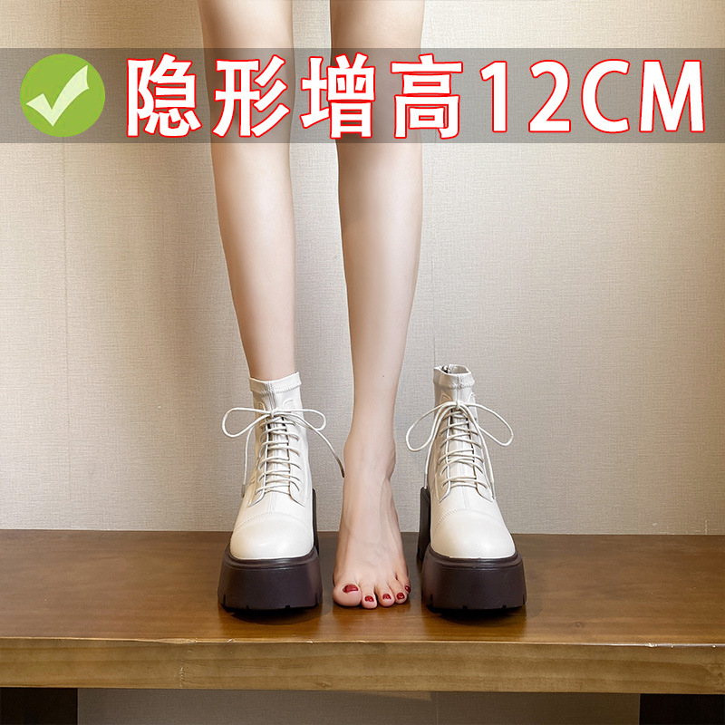 12CM 두꺼운 바닥 두꺼운 힐 높은 마틴 부츠 여성의 2024 새로운 영국 스타일 슬리밍 실린더 얇은 부츠스토어 가기
