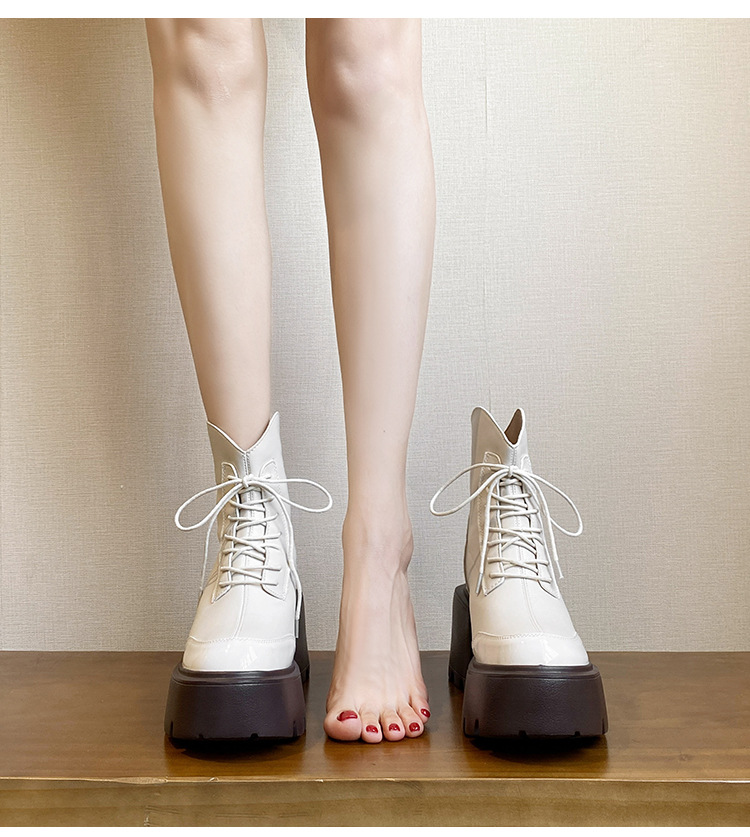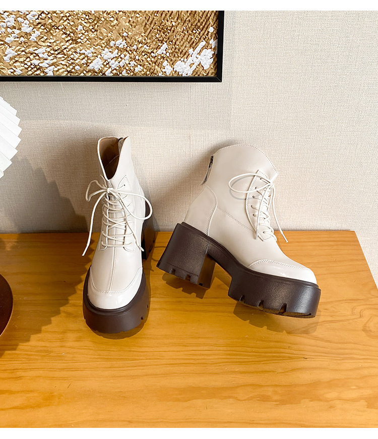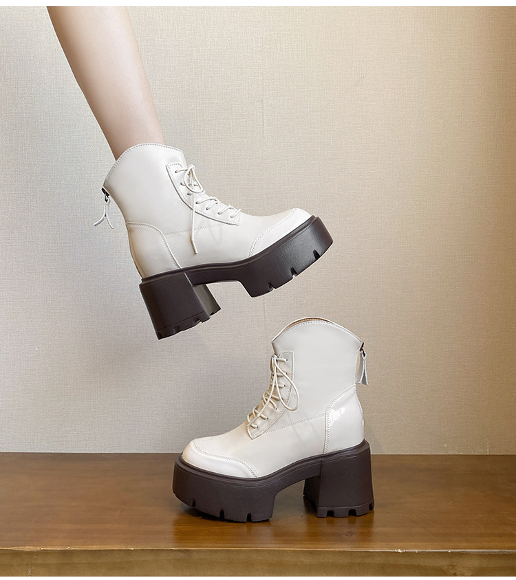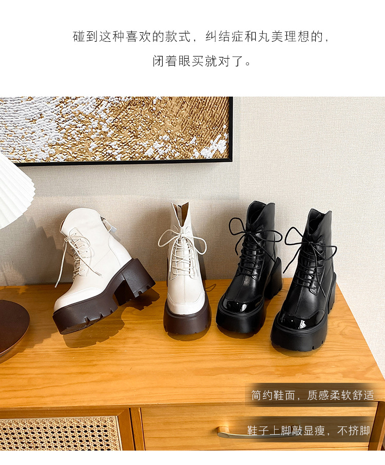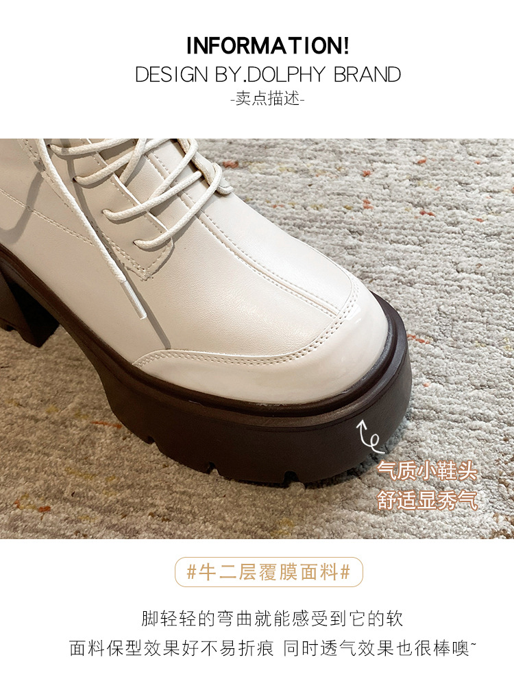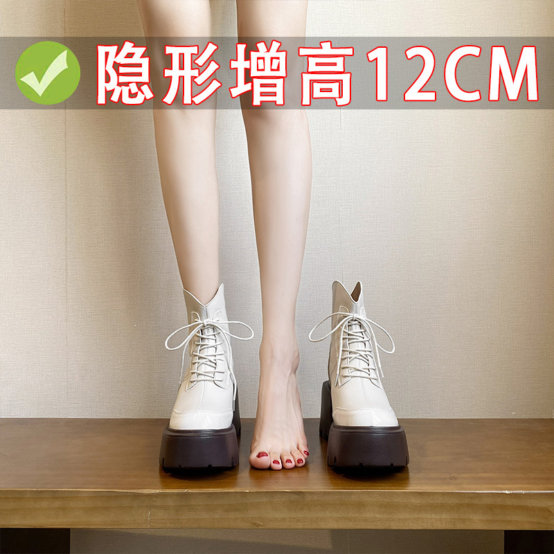 내부 높이 12CM 작은 슬림 화이트 마틴 부츠 여성의 2024 새로운 가을과 겨울 영국 스타일 두꺼운 힐 발목 부츠 33스토어 가기