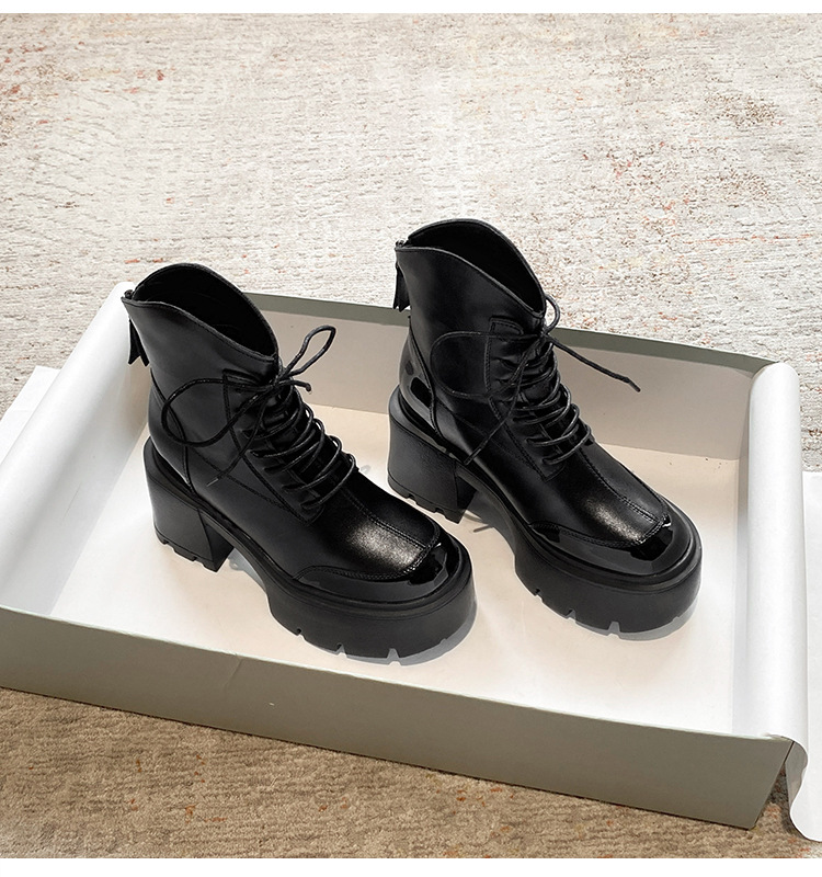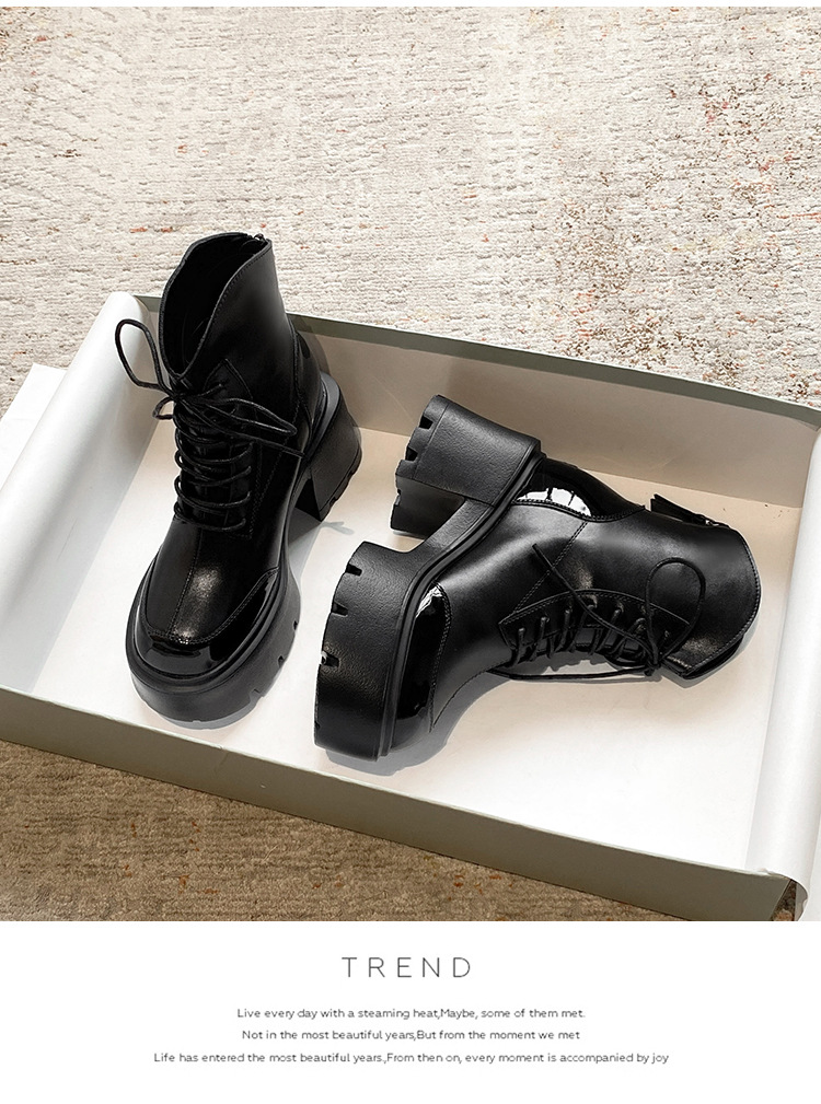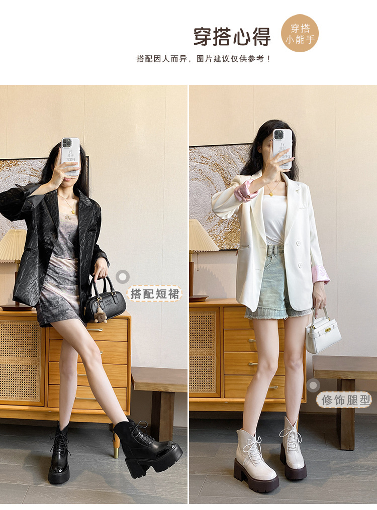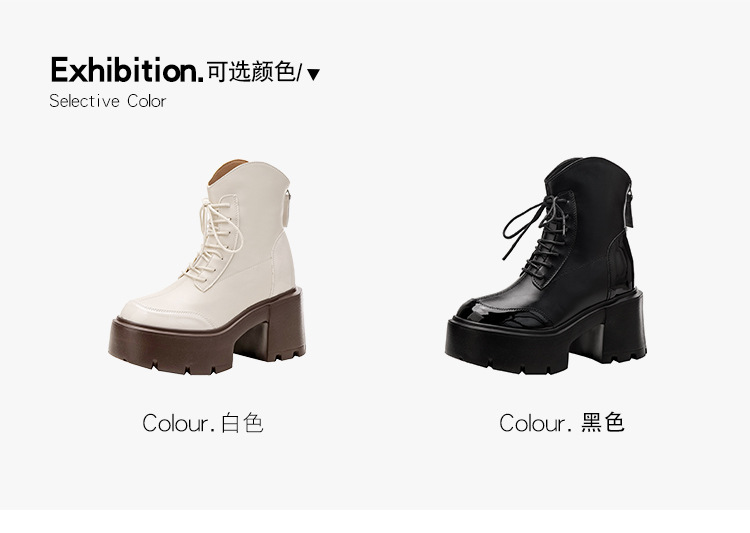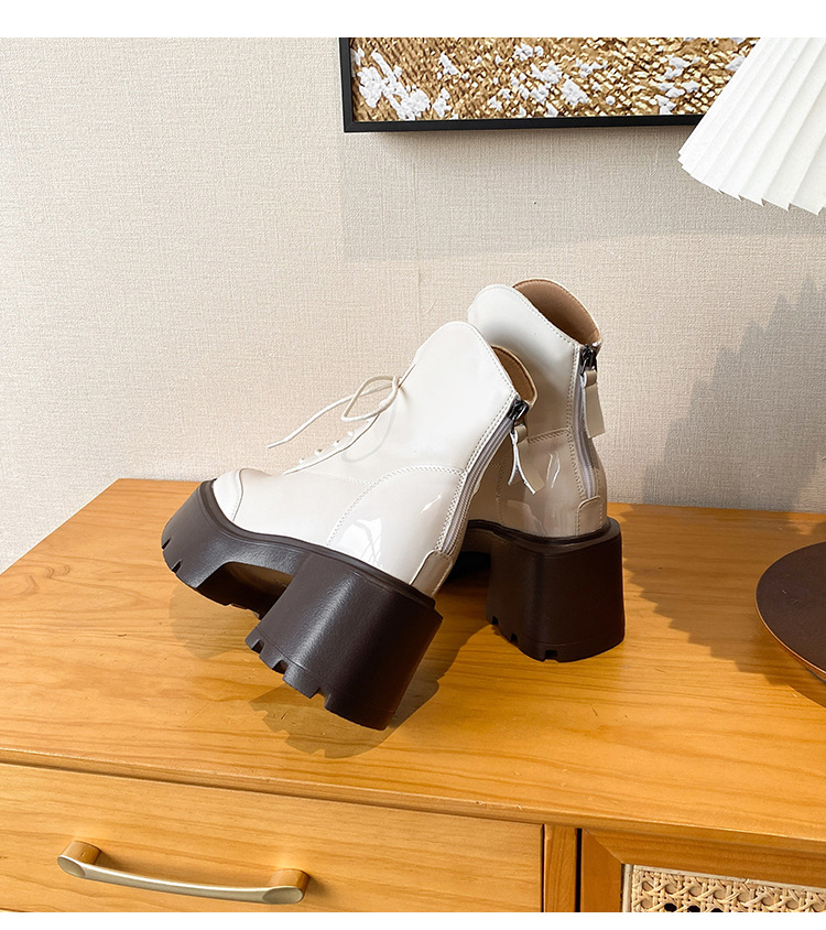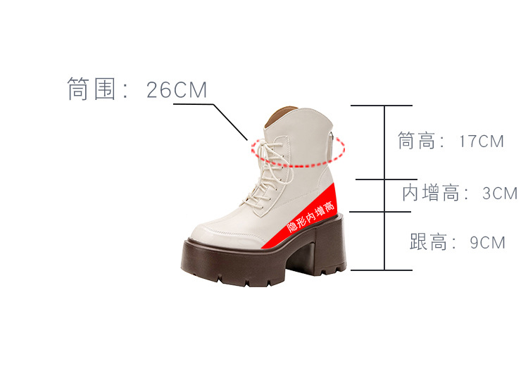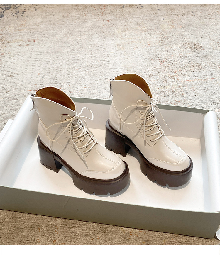 내부 높이 12CM 작은 슬림 화이트 마틴 부츠 여성의 2024 새로운 가을과 겨울 영국 스타일 두꺼운 힐 발목 부츠 33스토어 가기