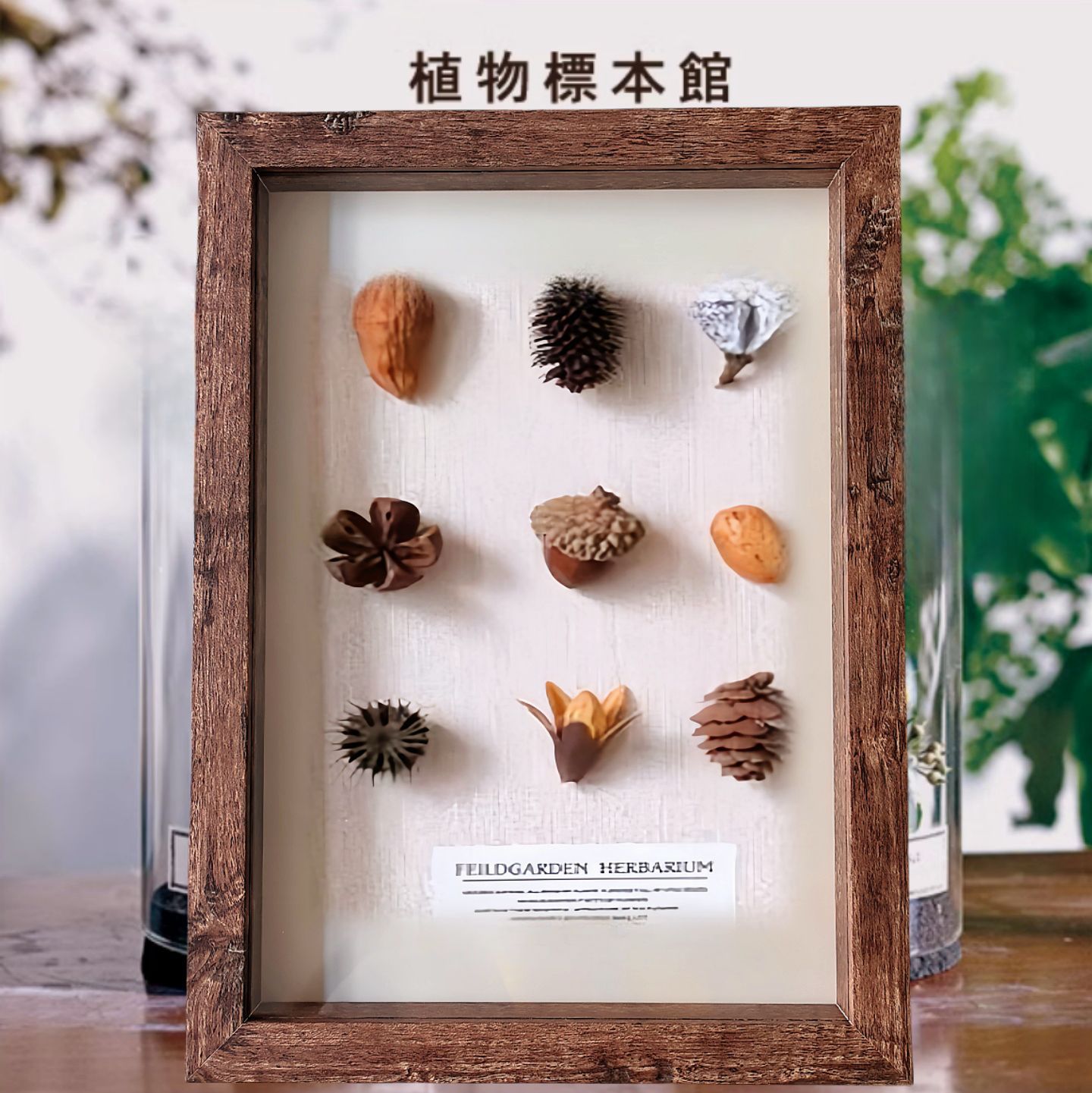 北欧木质相框手工DIY10宫格6孔贝壳昆虫植物果实标本中空摆台画框