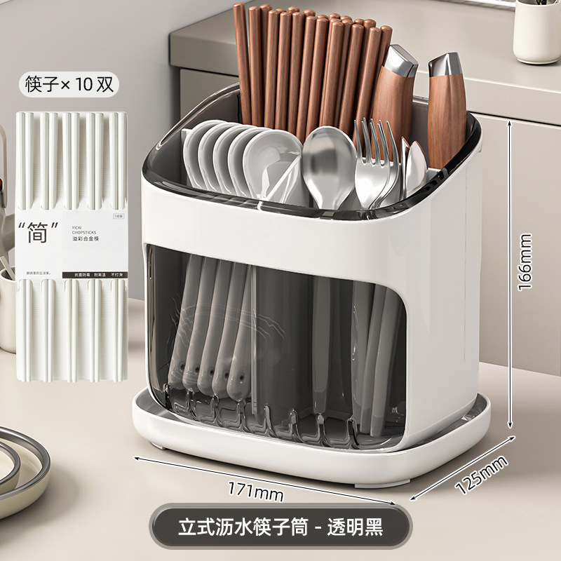 • 블랙 + 젓가락 5쌍 [칸막이 수납, 물빠짐 및 건조 용이]