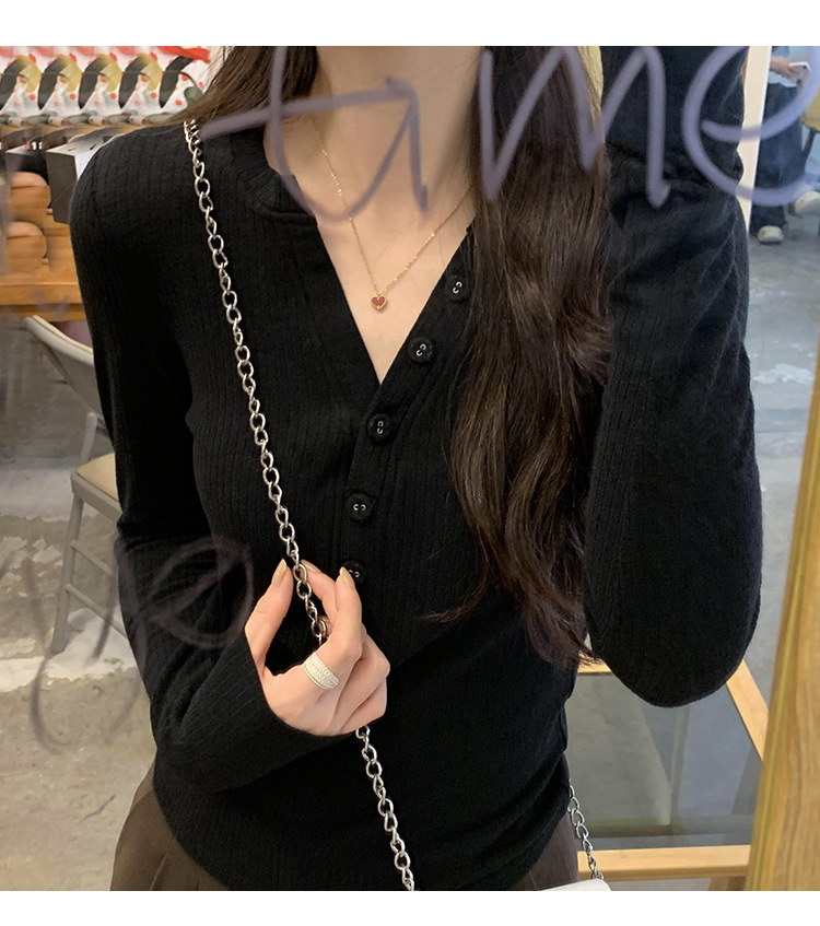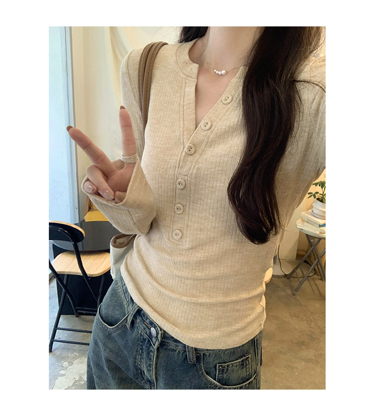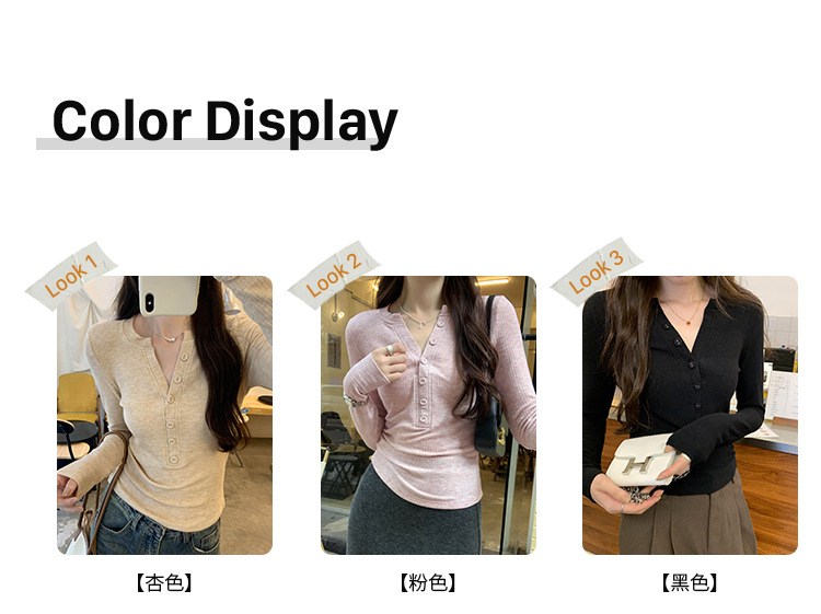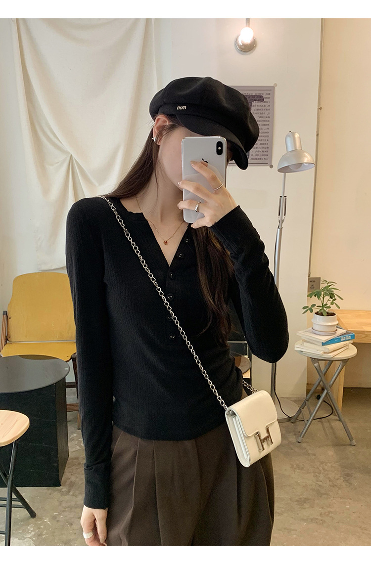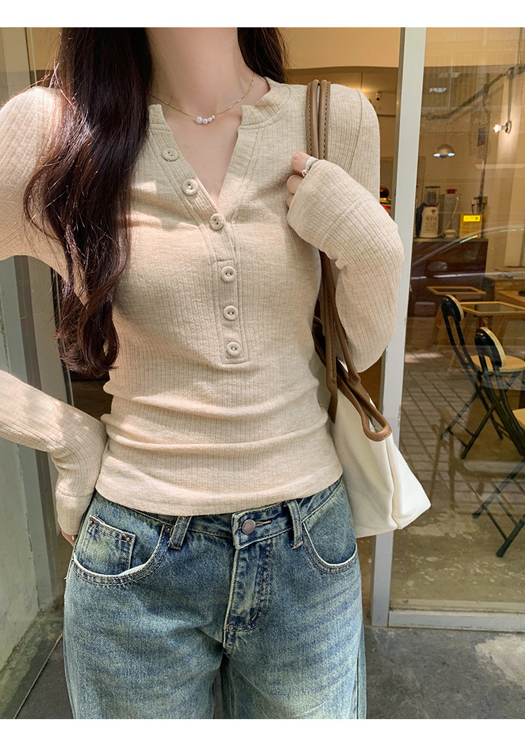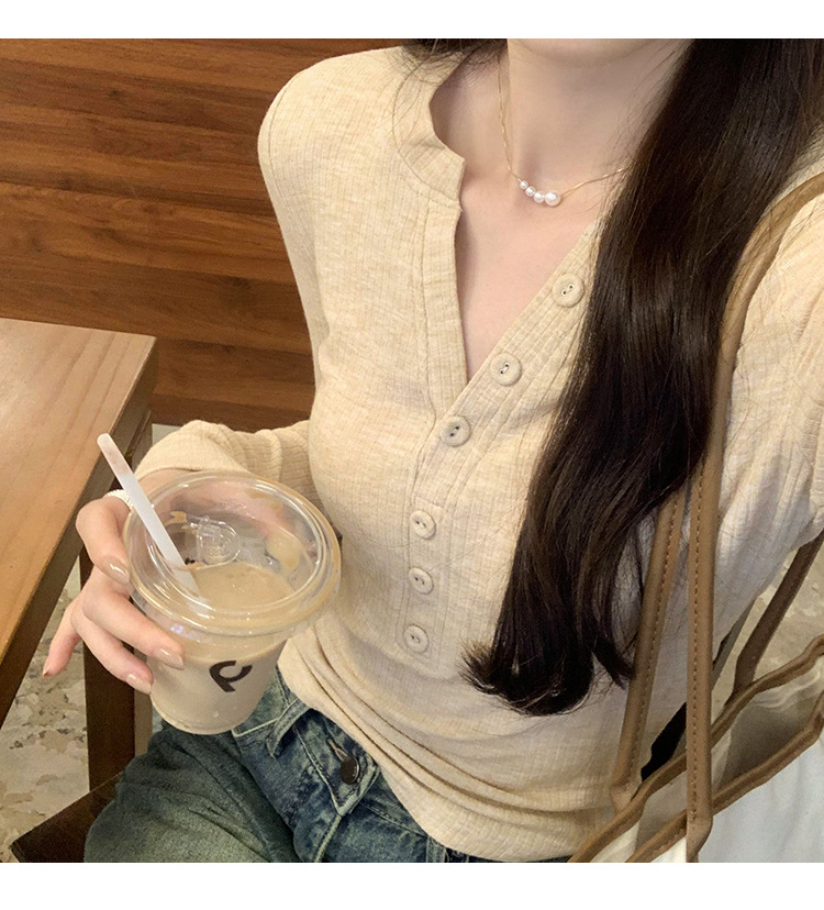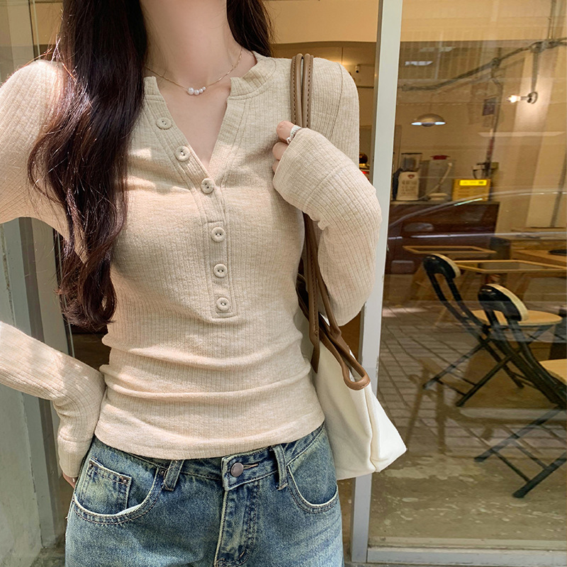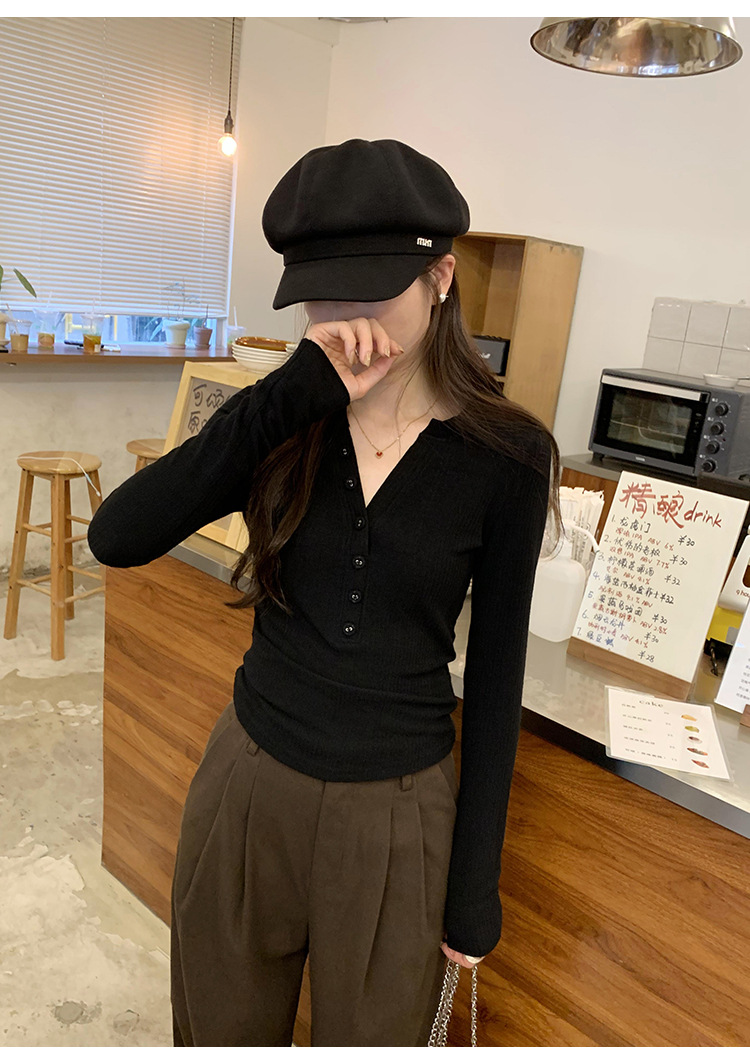 한국 스타일 게으르고 편안한 내베이스 티셔츠 여성 2024 년 초가을 새로운 우아한 슬림 핏 하프 오픈 칼라 탑