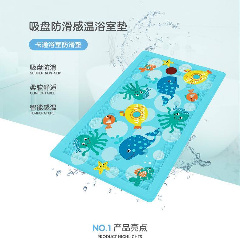 욕조 욕실 미끄럼 방지 매트 귀여운 만화 스마트 어린이 온도에 민감한 화장실 욕실 샤워 미끄럼 방지 매트