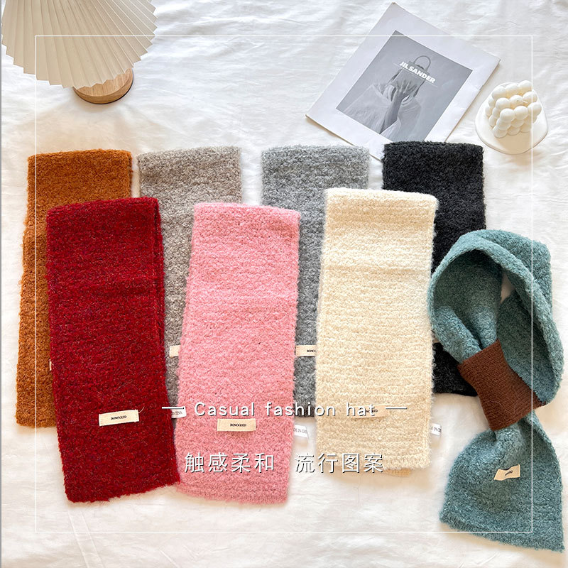 부드럽고 왁스 피부 친화적 인 단색 올 매치 니트 스카프 여성의 겨울 따뜻한 양모 스카프 편안한 흰색 학생 커플 한국어스토어 가기
