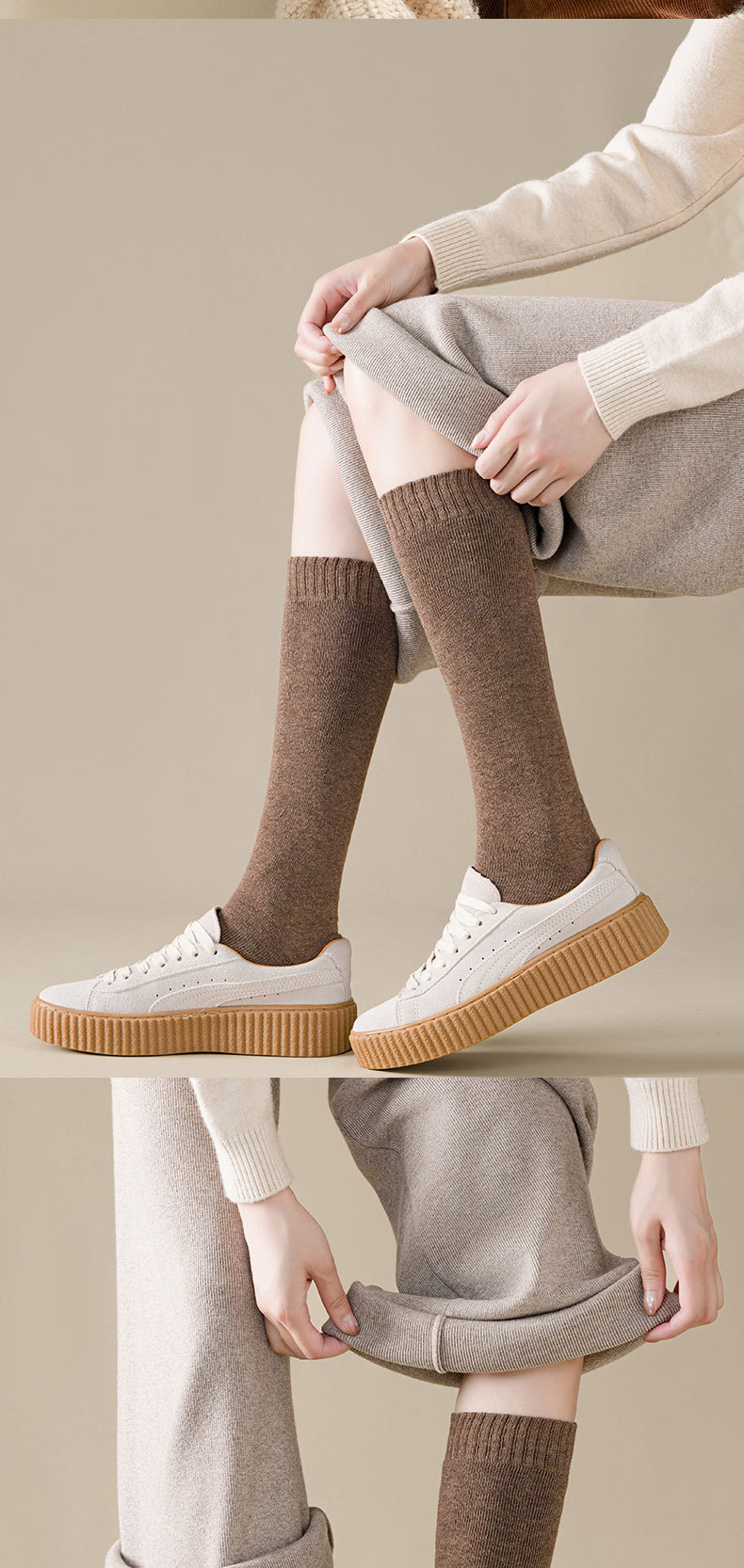 가을 겨울용 두꺼운 보온 롱삭스, 테리 소재 레그삭스, 학생용 JK 일본풍 기모 하이삭스스토어 가기