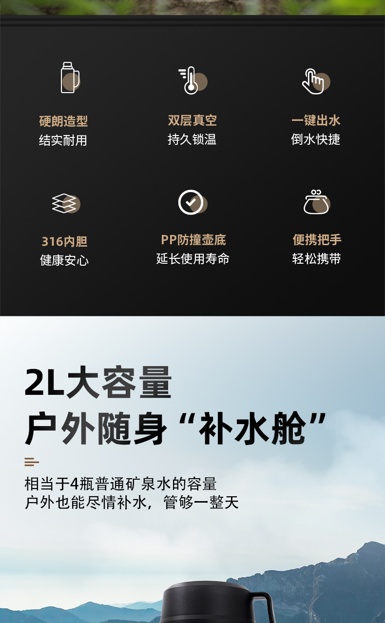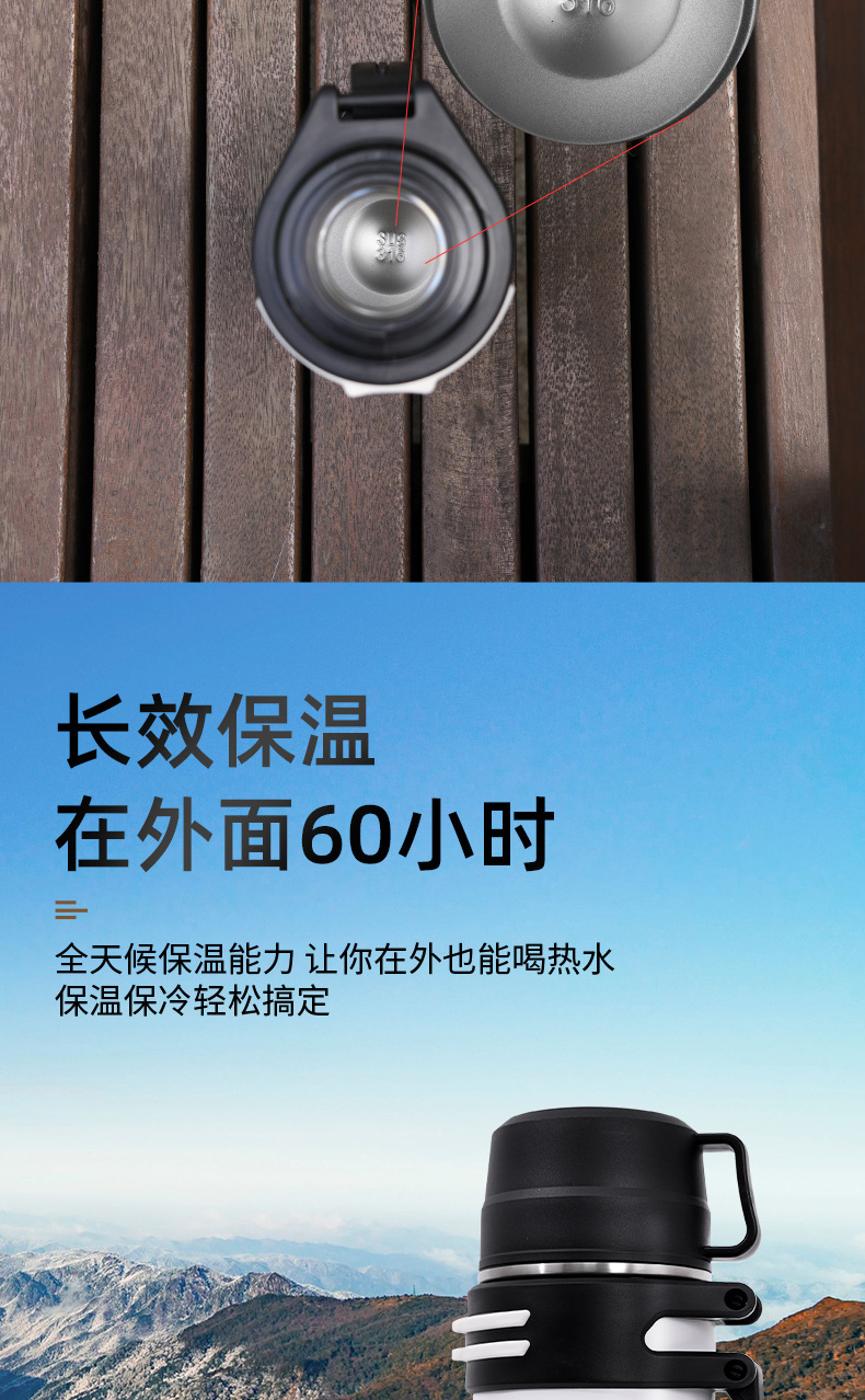 대용량 장기 냉온 야외 등산 이중 목적 야외 주전자 뜨거운 주전자 스튜 주전자 단열 냄비