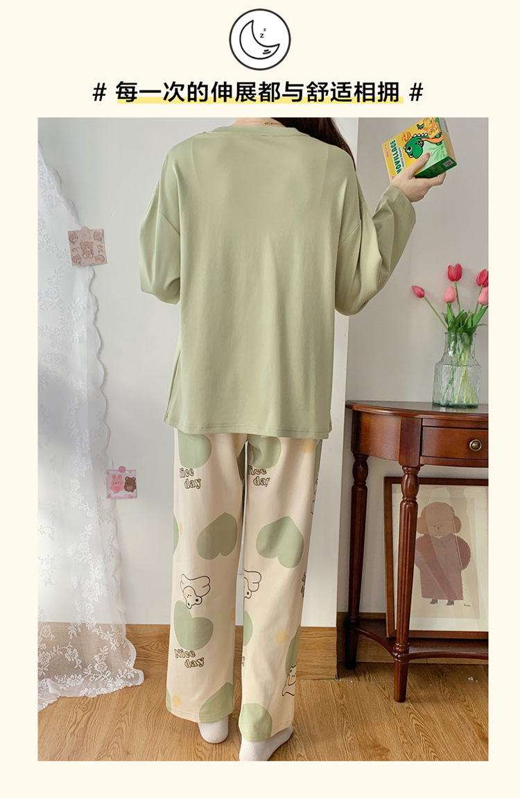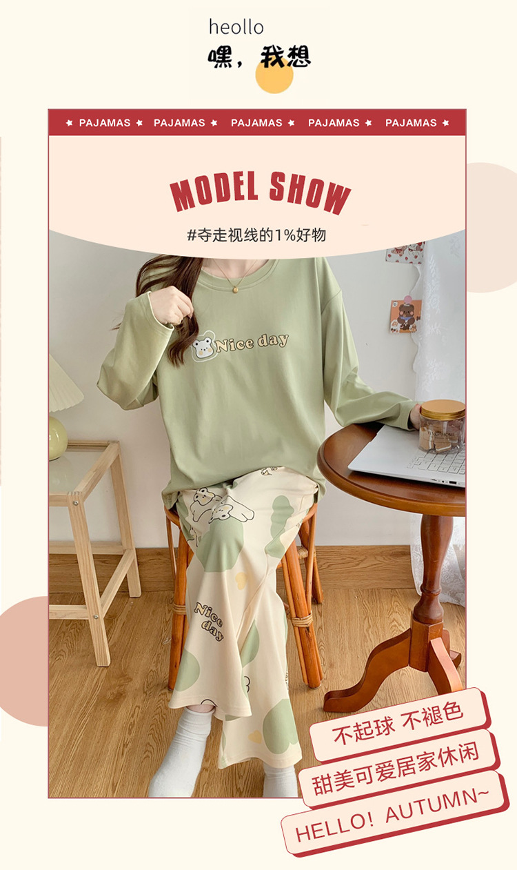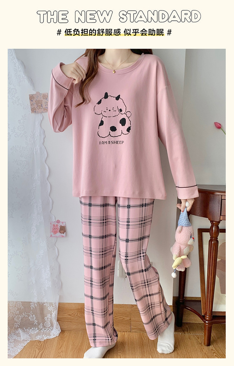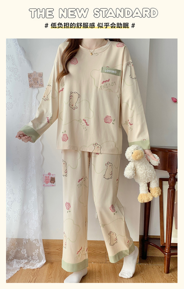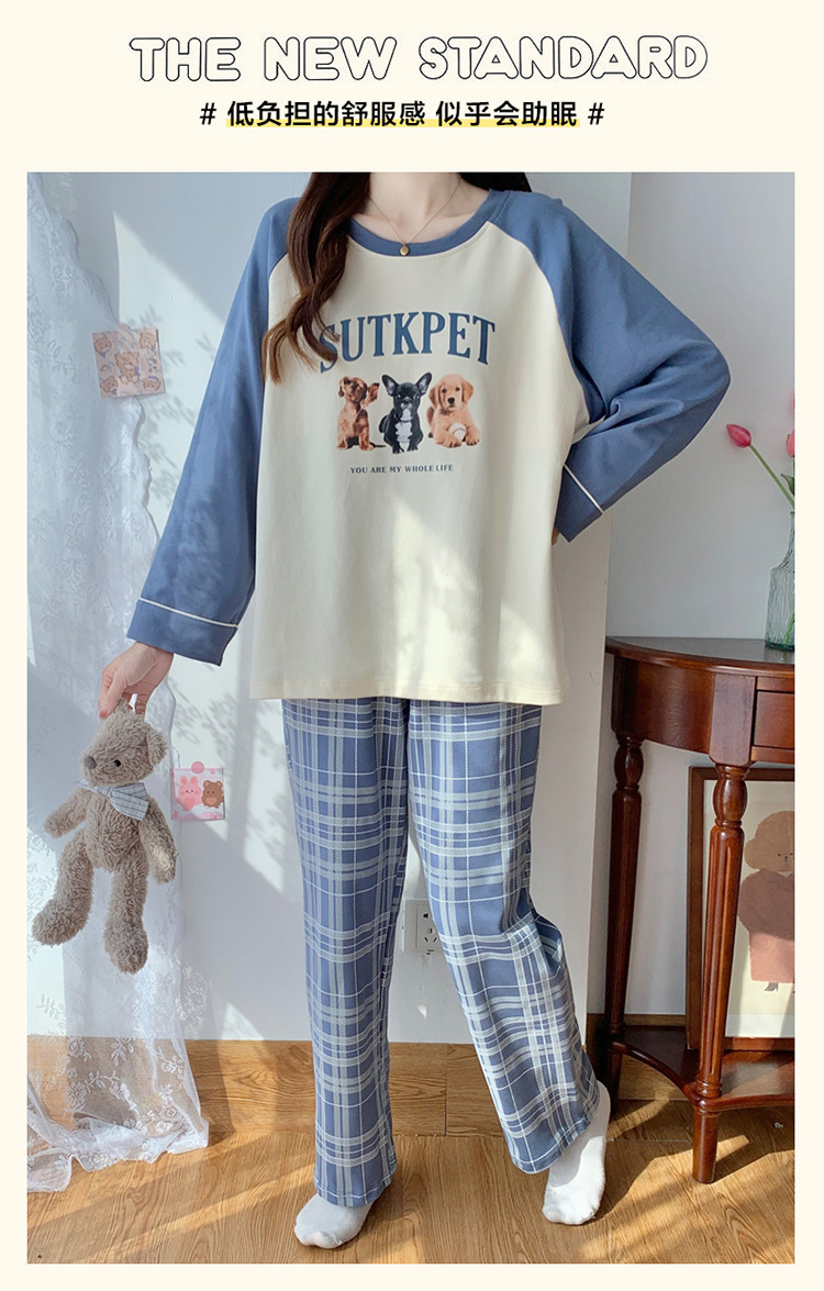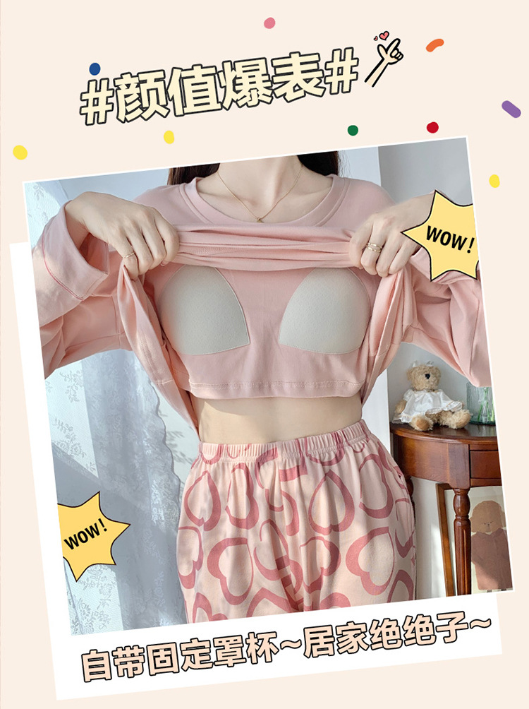 여자 면 잠옷 봄 가을 가슴 패드 한 조각 외부 착용 만화 느슨한 홈 옷 세트 2024 새로운스토어 가기